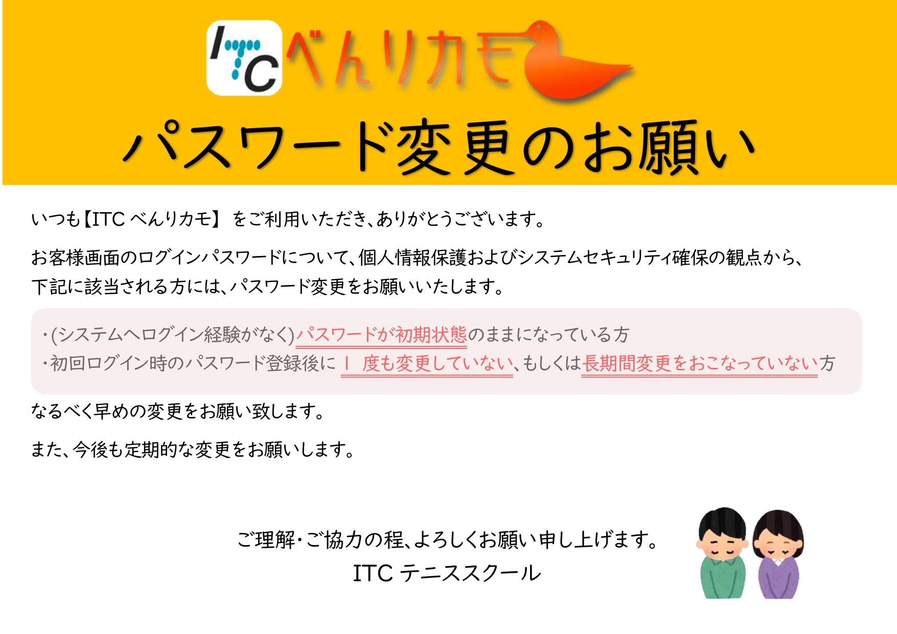 べんりカモパスワード変更のお願い