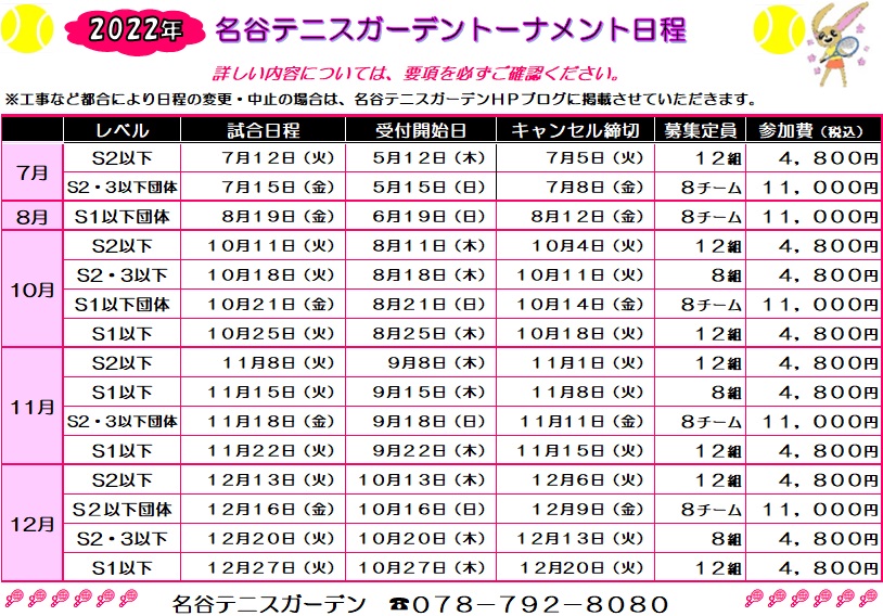 以前ご案内した日程がコートの修繕工事の都合により、上記日程に変更となりました。