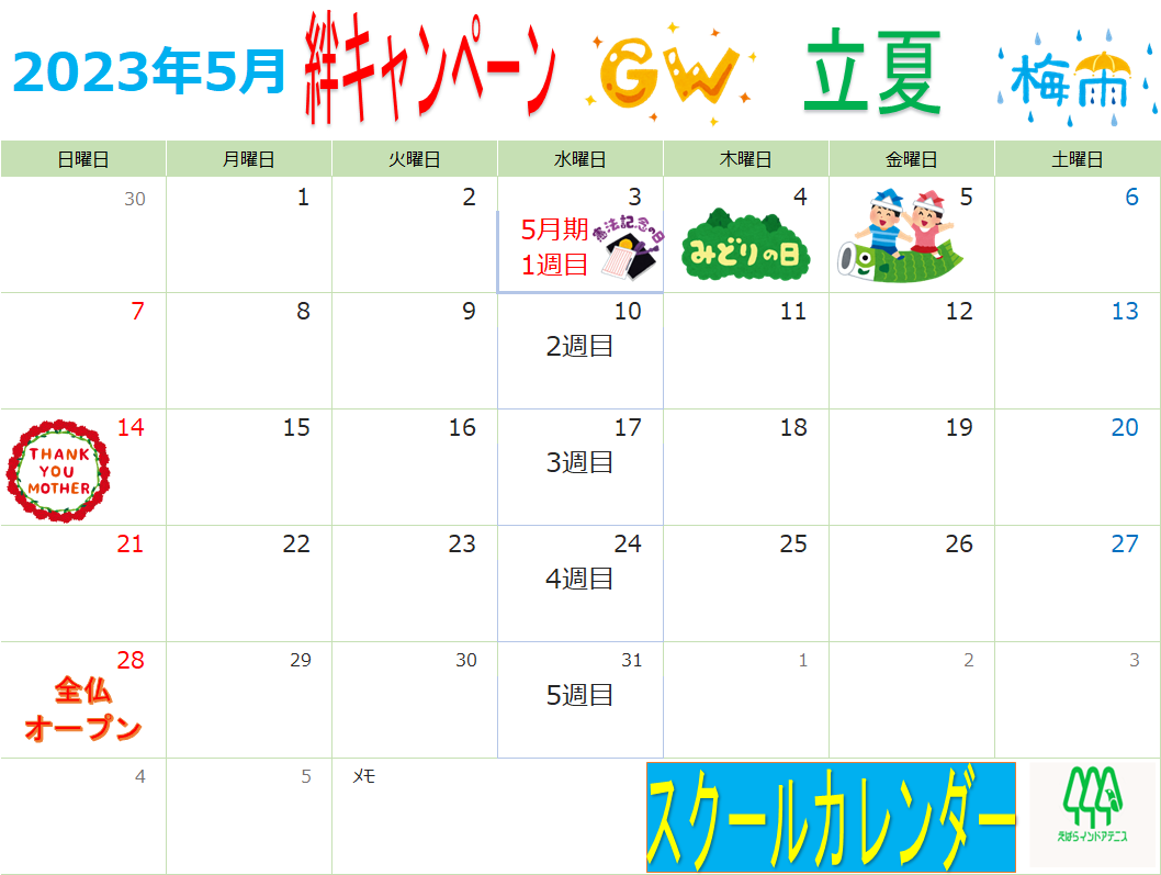 えばらインドアテニスから【5月期スクールカレンダー】のお知らせです。