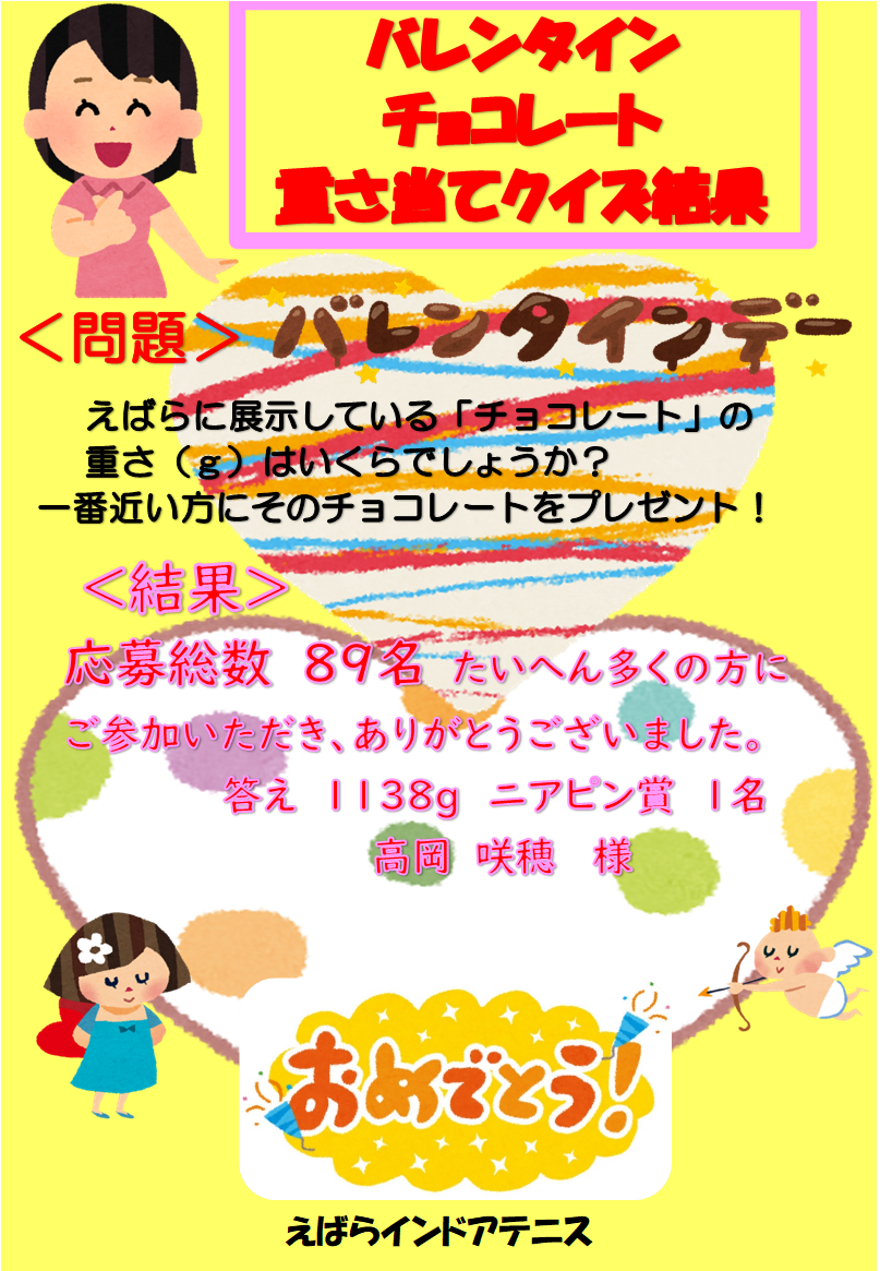 2月イベント【バレンタインクイズ】結果発表です