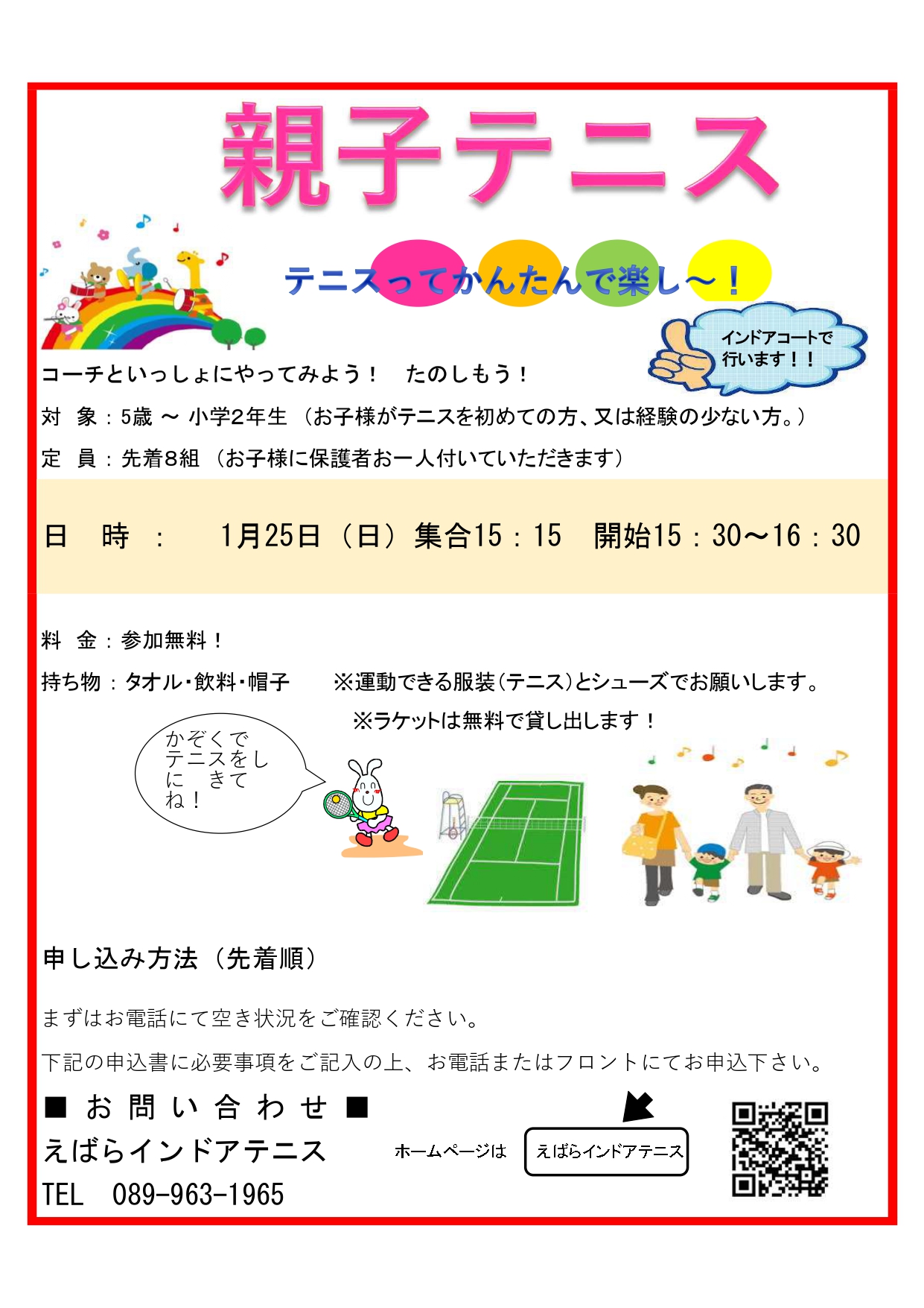 1月25日(日)は、親子テニスを開催します。
