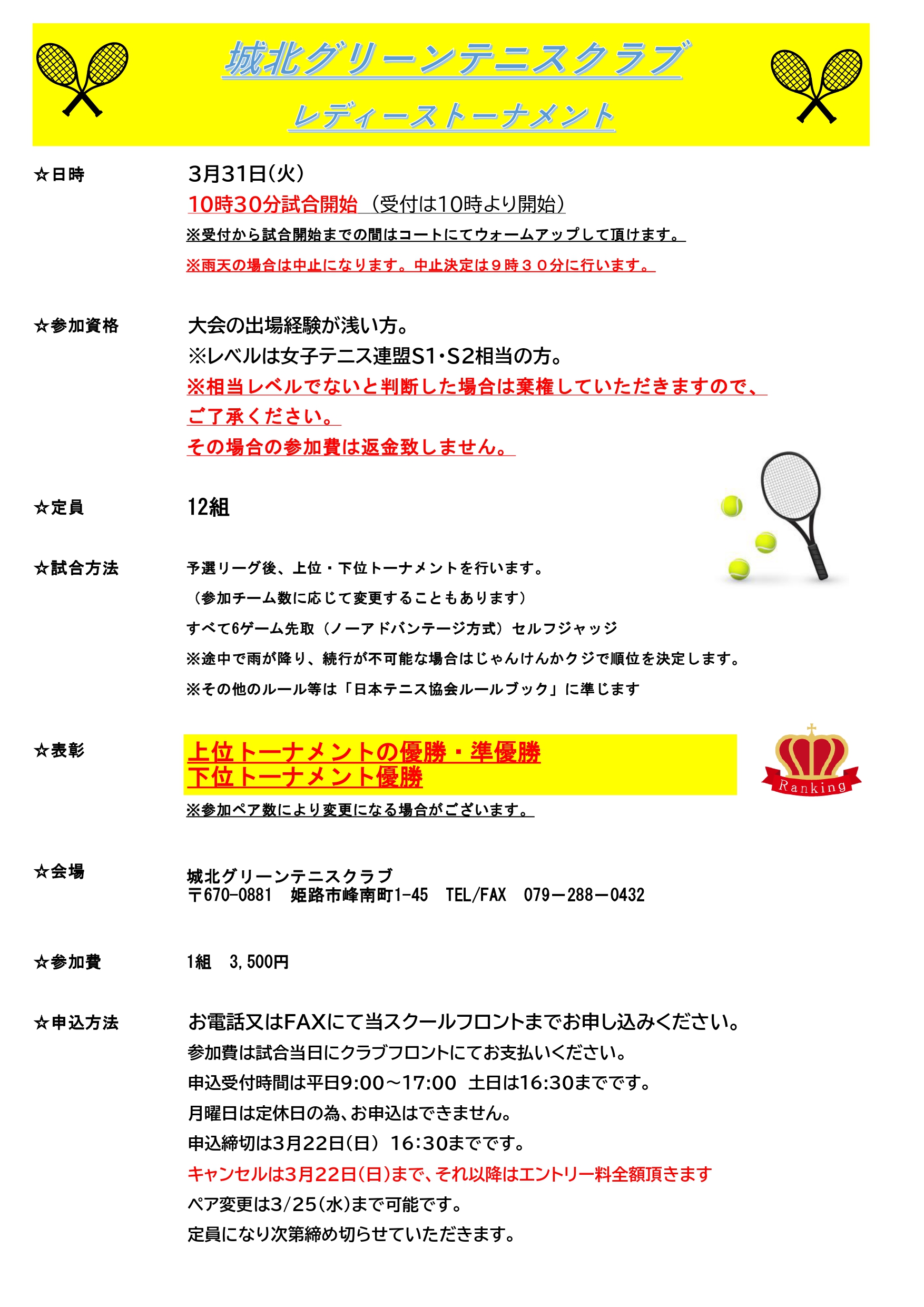 3月31日レディーストーナメント開催です (02/05)