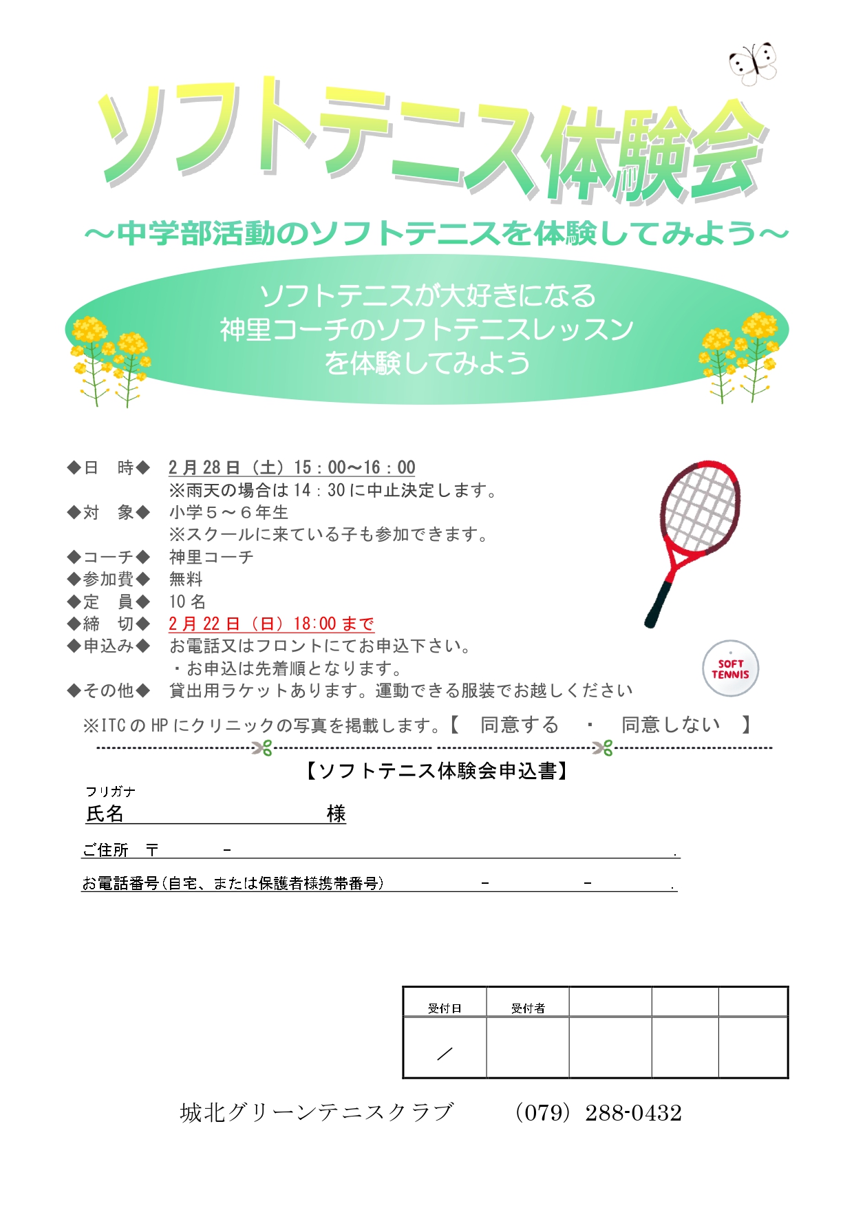 小学5・6年生対象のソフトテニス体験会を開催します。