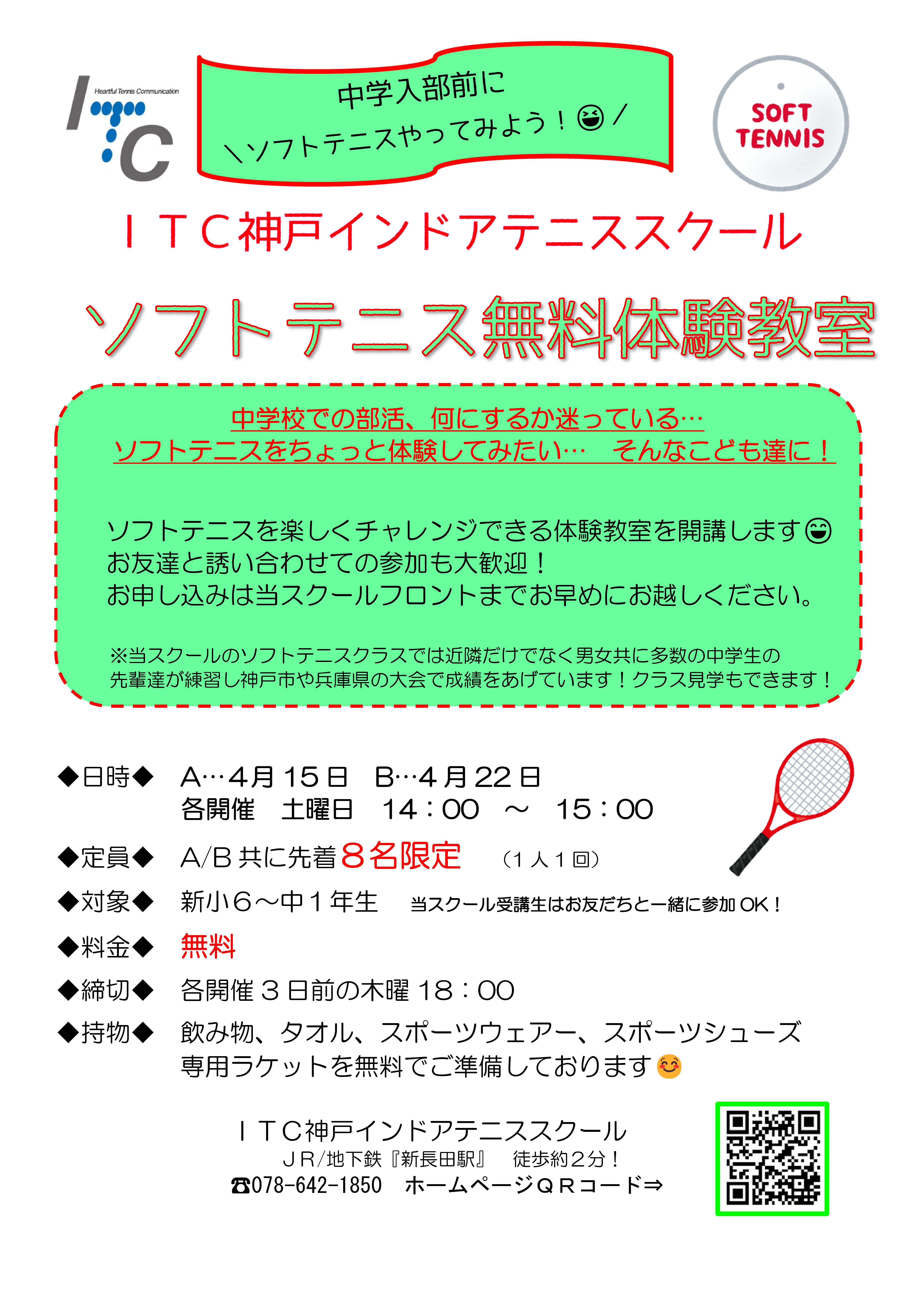 今回は、ソフトテニス無料体験教室のご案内です