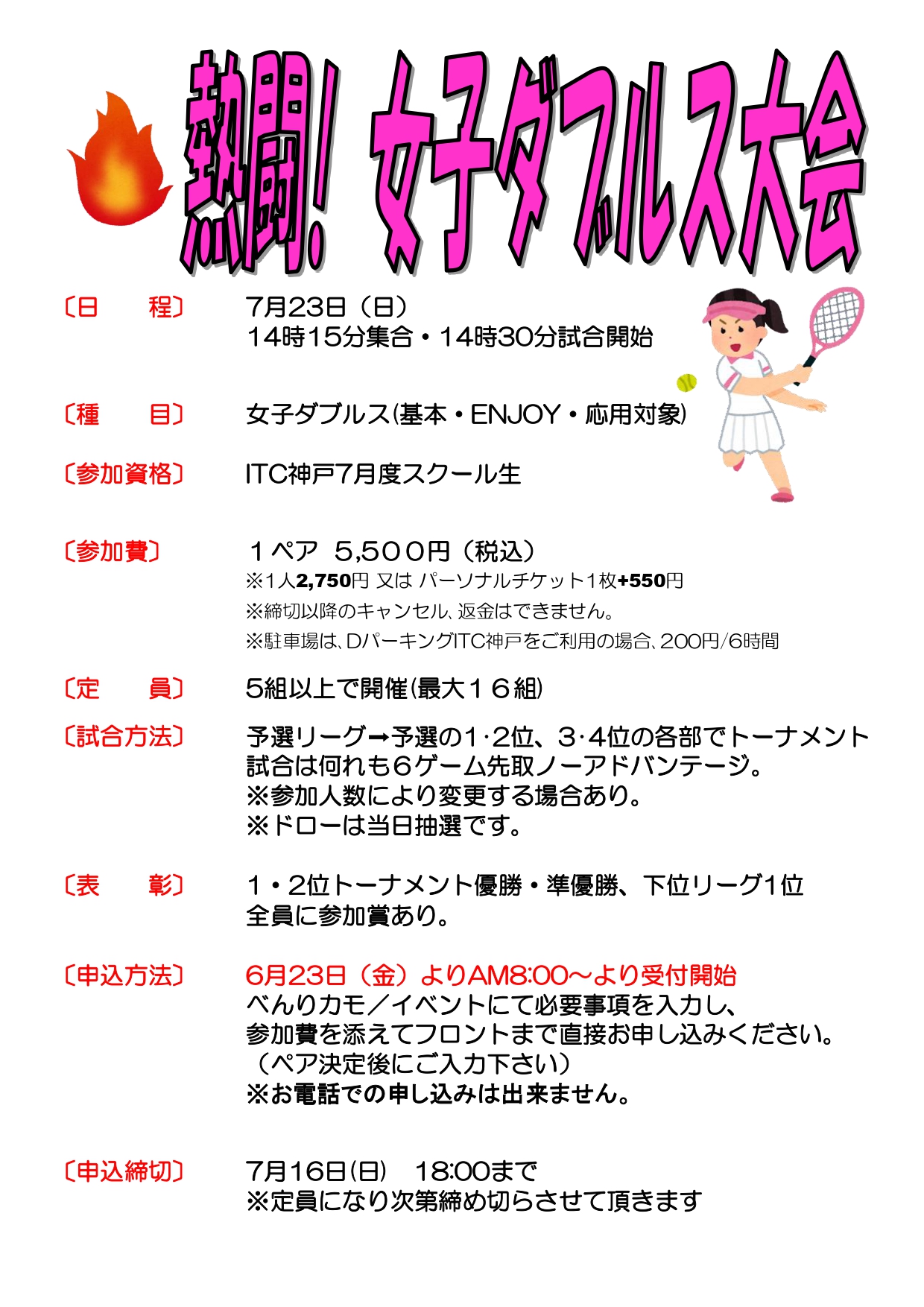 男子ダブルスに続き、7月23日(日) 【熱闘!女子ダブルス】を開催予定です!!