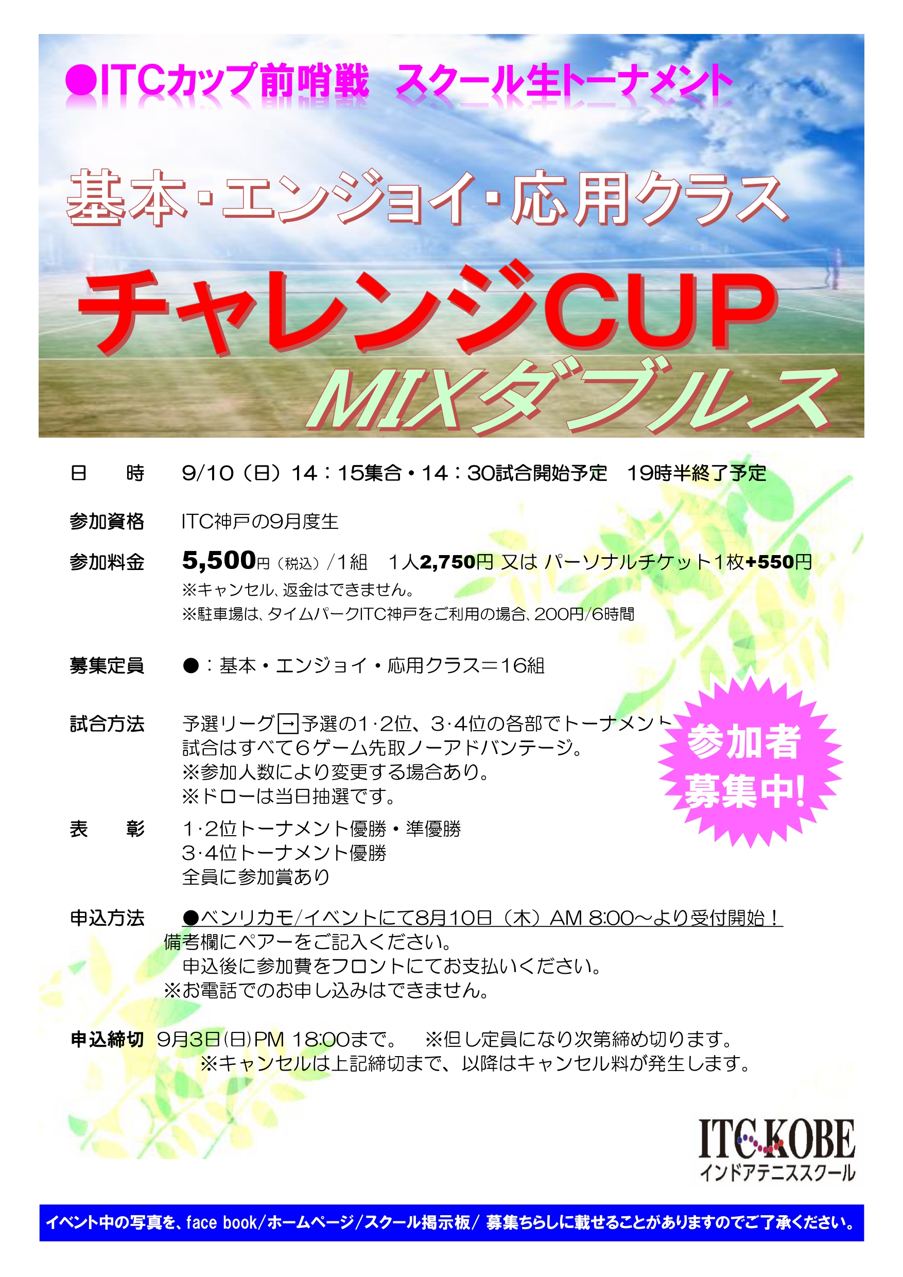 いつもITC神戸インドアテニススクールをご利用いただきありがとうございます