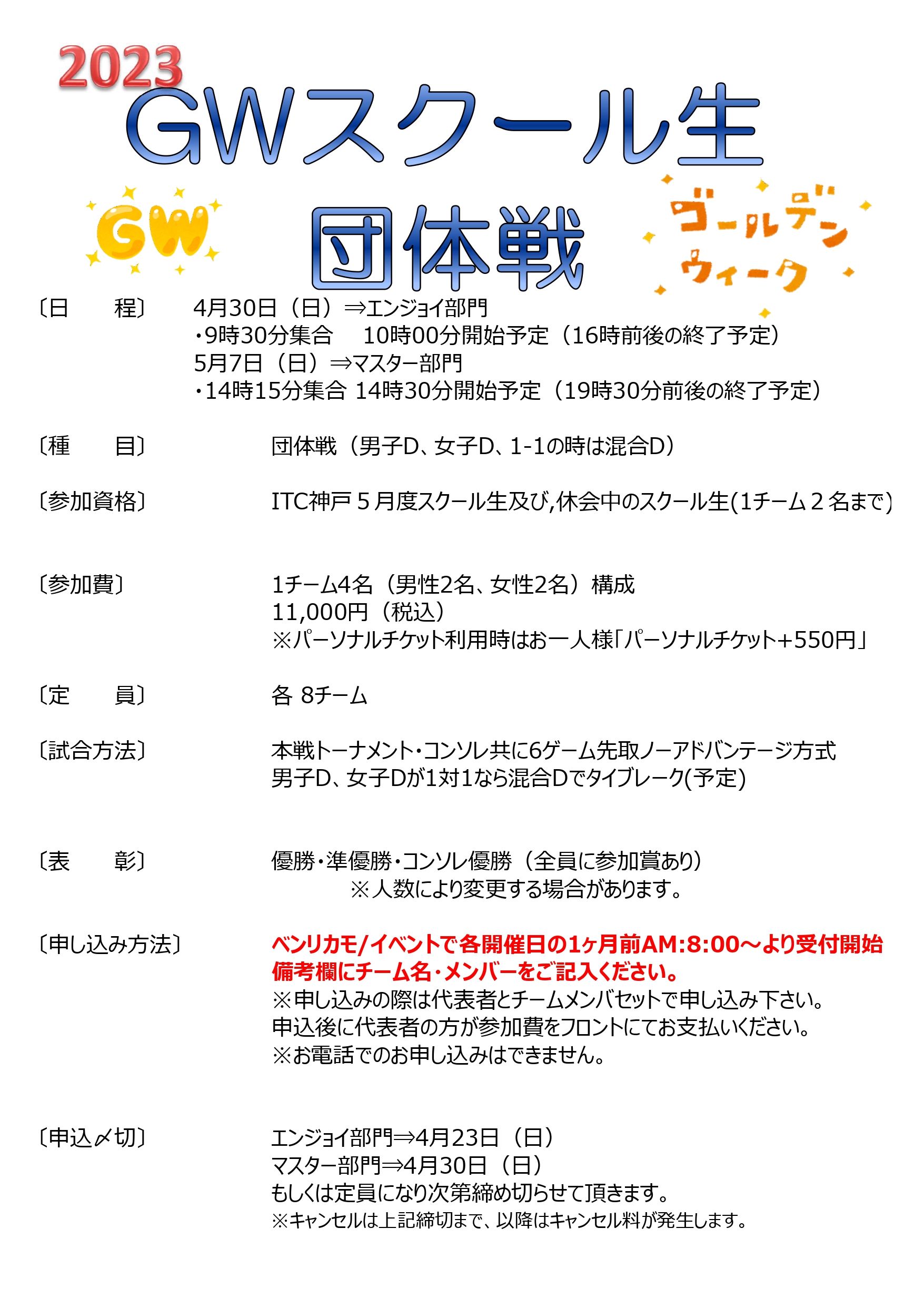 2023!GWスクール生団体戦!!!のご案内です