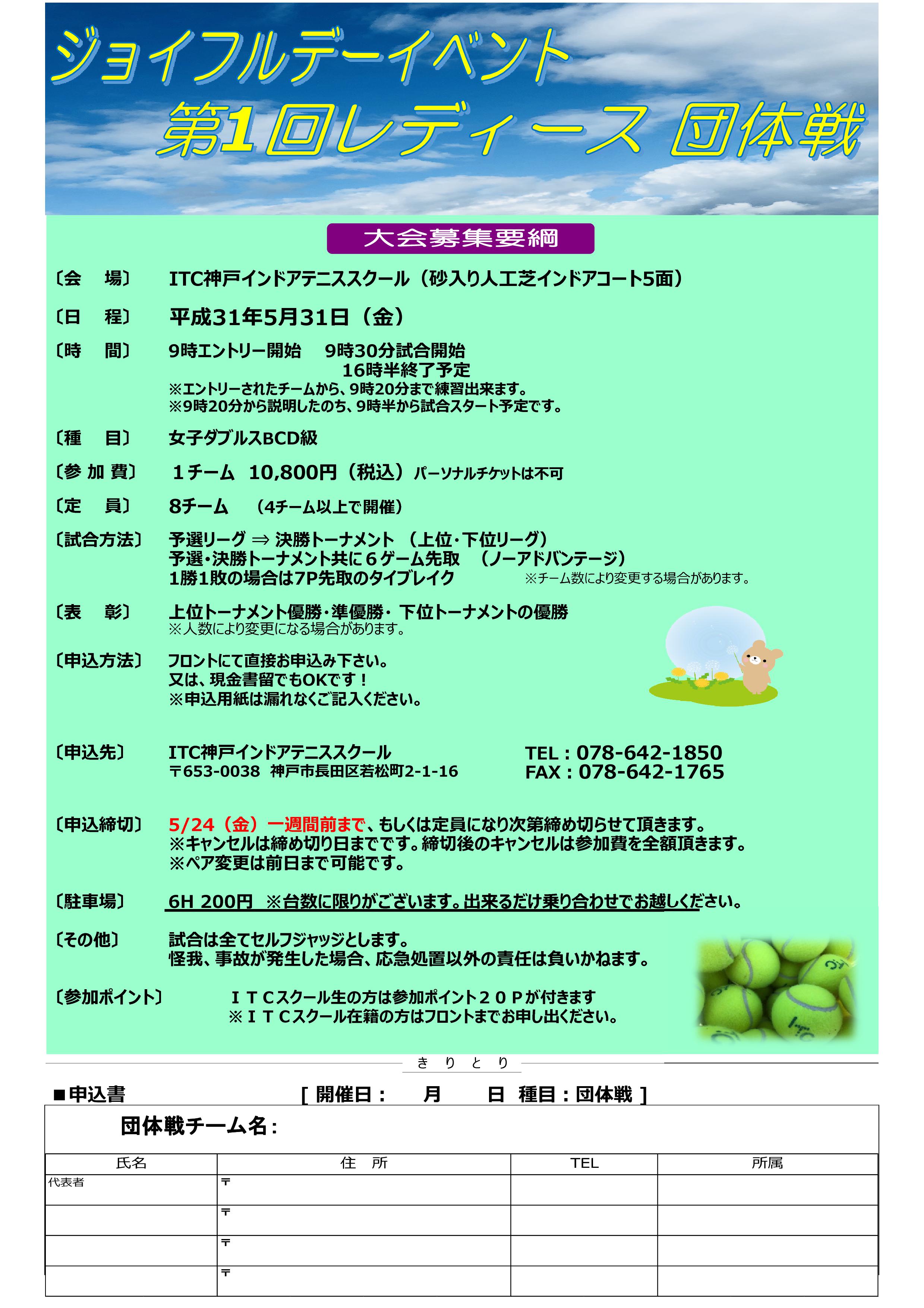 9:30~16:00の時間で「レディース団体戦」を行います!