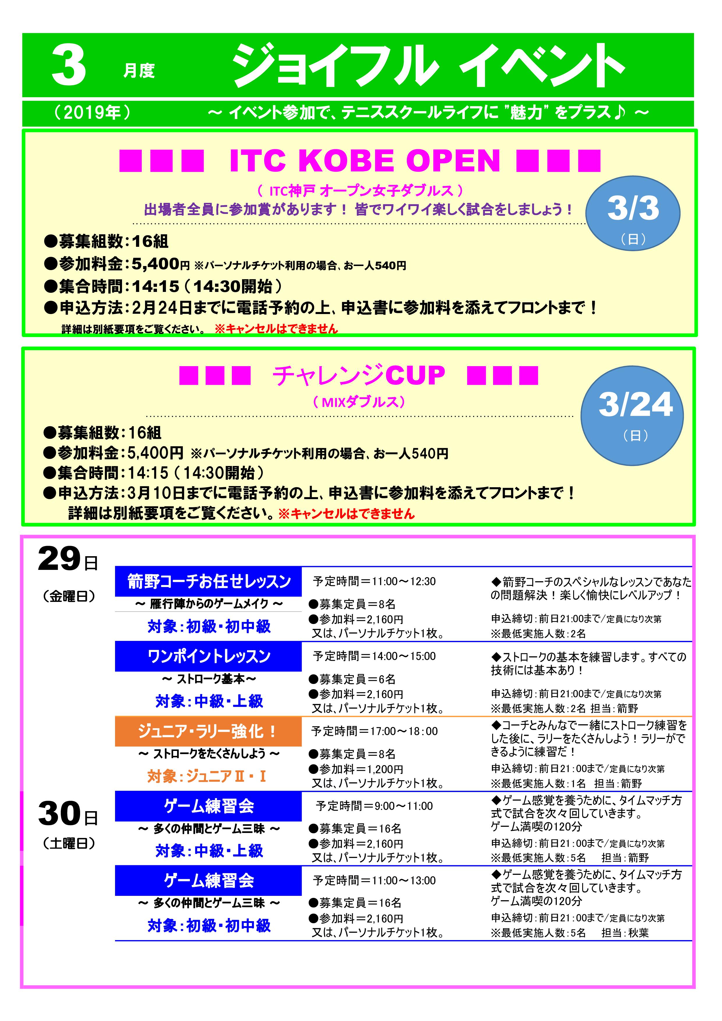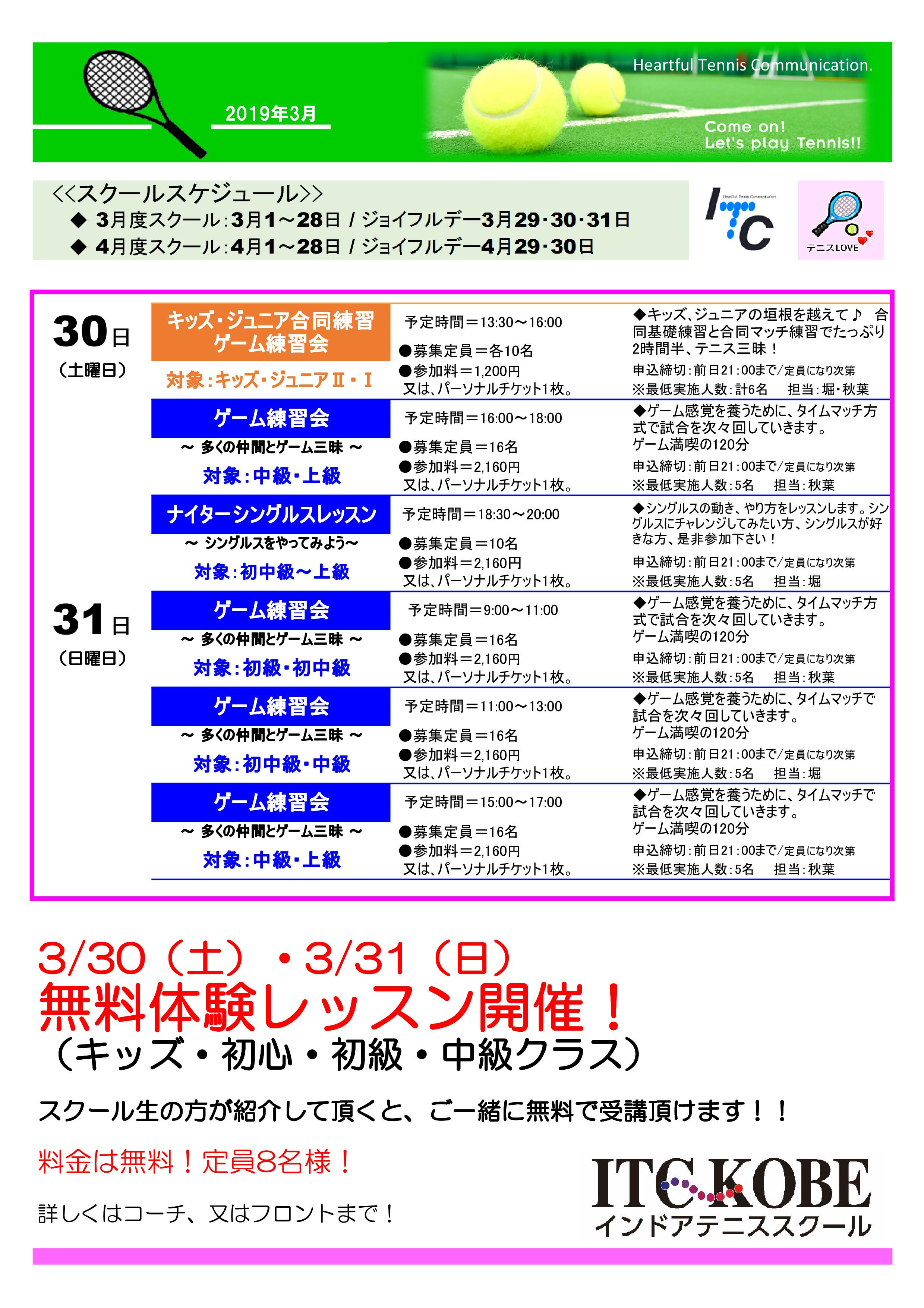 3月度のスクールですが、3/29~3/31はジョイフルデーとなっていますので