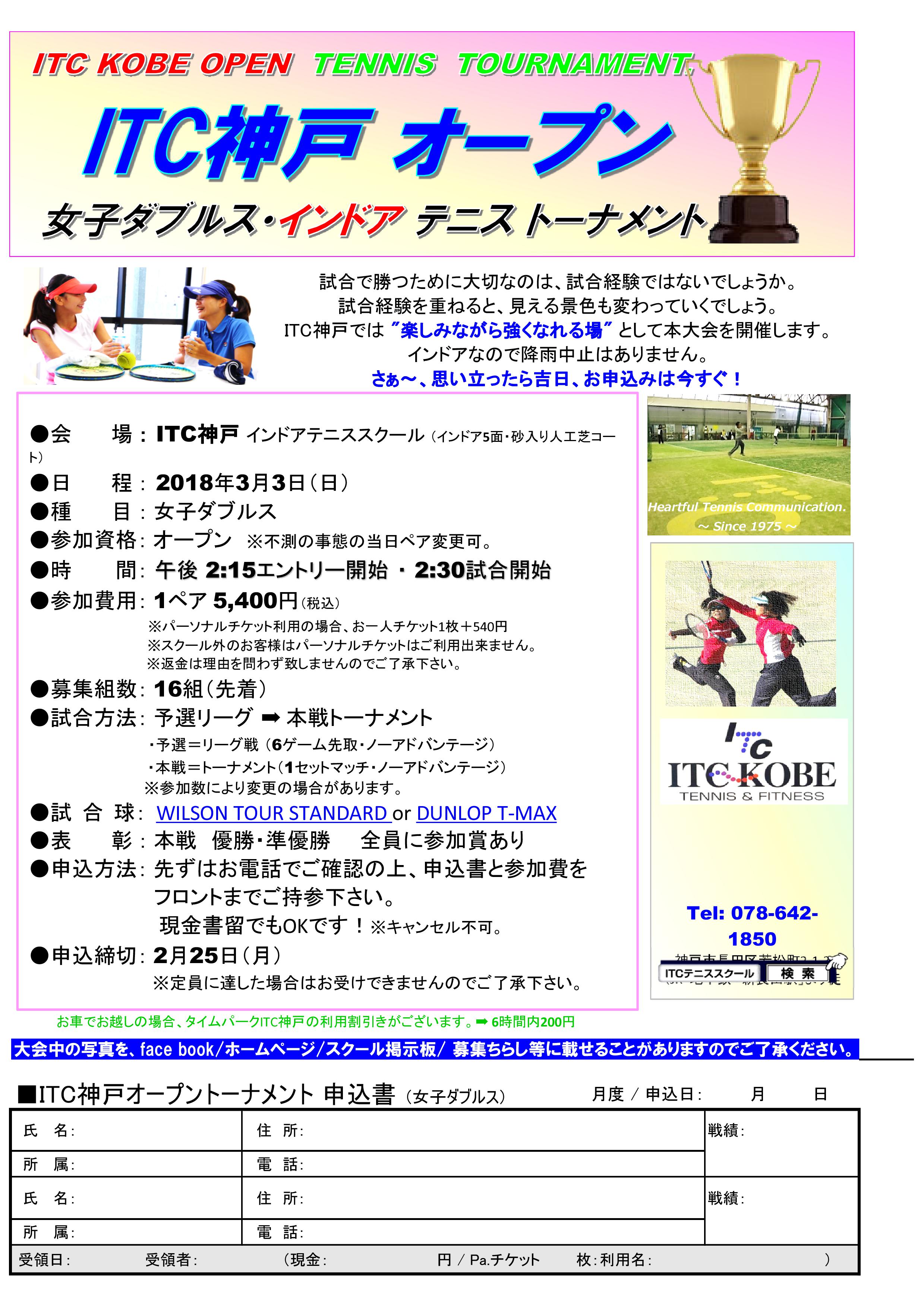 3/3(日)の14:30から「オープン女子ダブルス㏌ ITC神戸」のイベントを行います☆