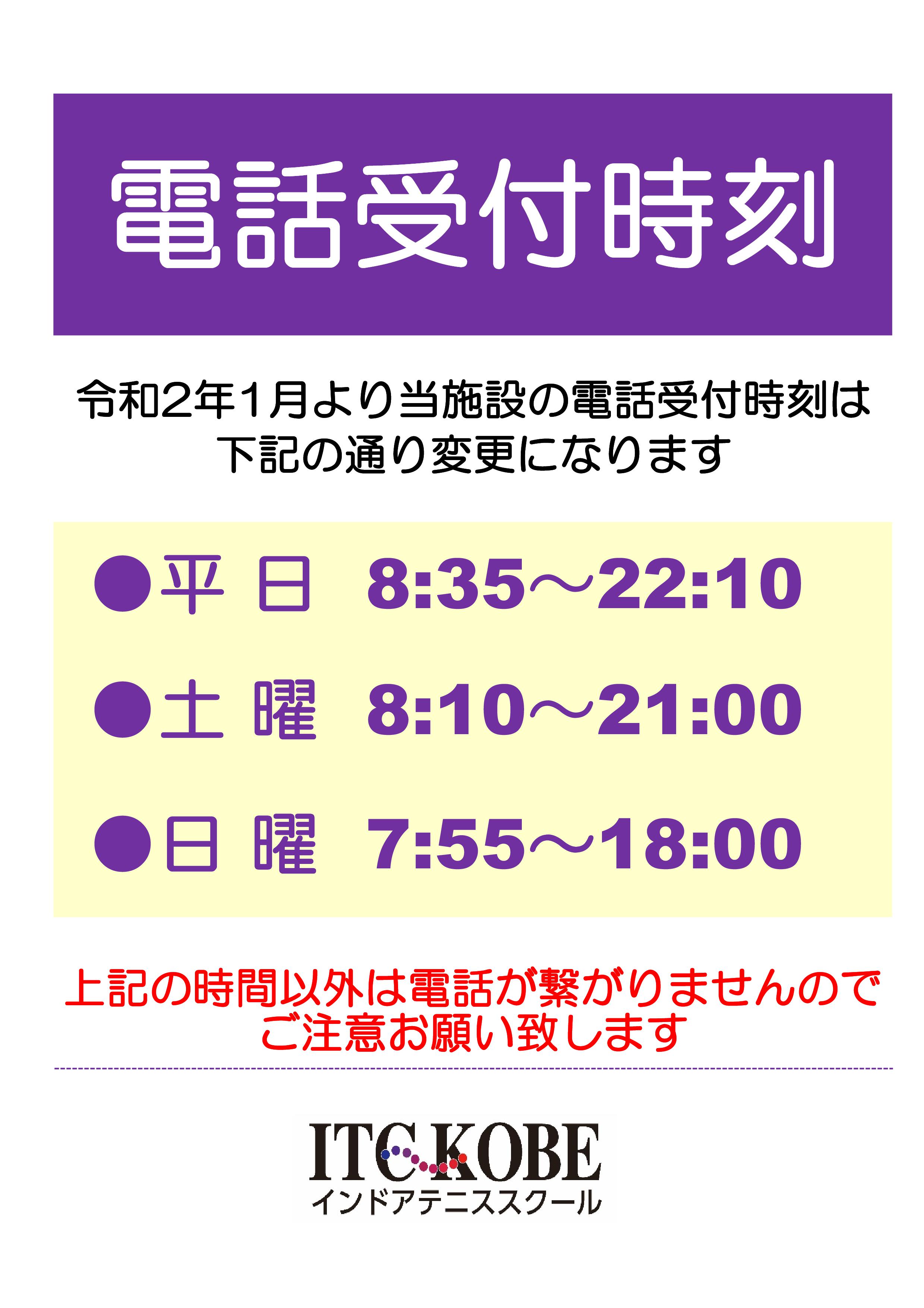 2020年。ITC神戸電話受付の変更のお知らせです。