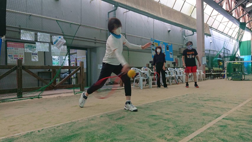 イージーテニスは小さなコート、軽~いラケットにスポンジボールを使った、