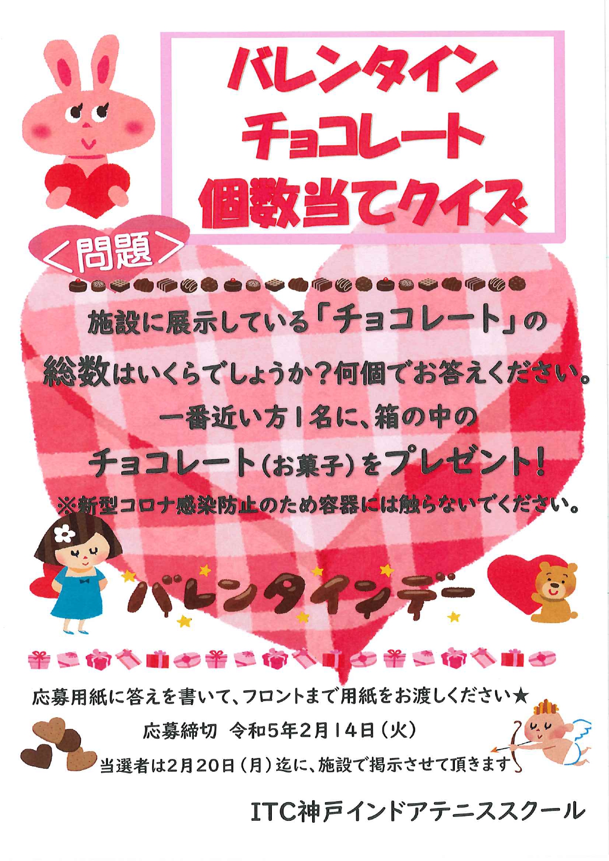 フロント前に置いてあるチョコ(お菓子)の総数を当てる企画です