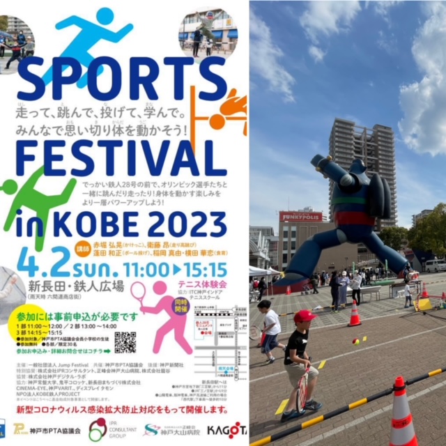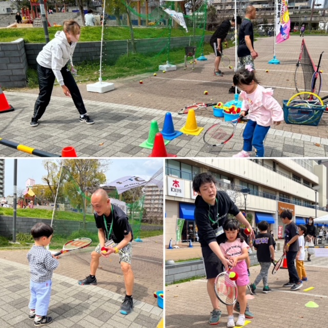 街中の特設競技場で陸上の跳躍競技を楽しむイベント「JUMP FESTIVAL(ジャンプフェスティバル)in KOBE」の協力開催として【こどもテニス体験】を行いました🎾