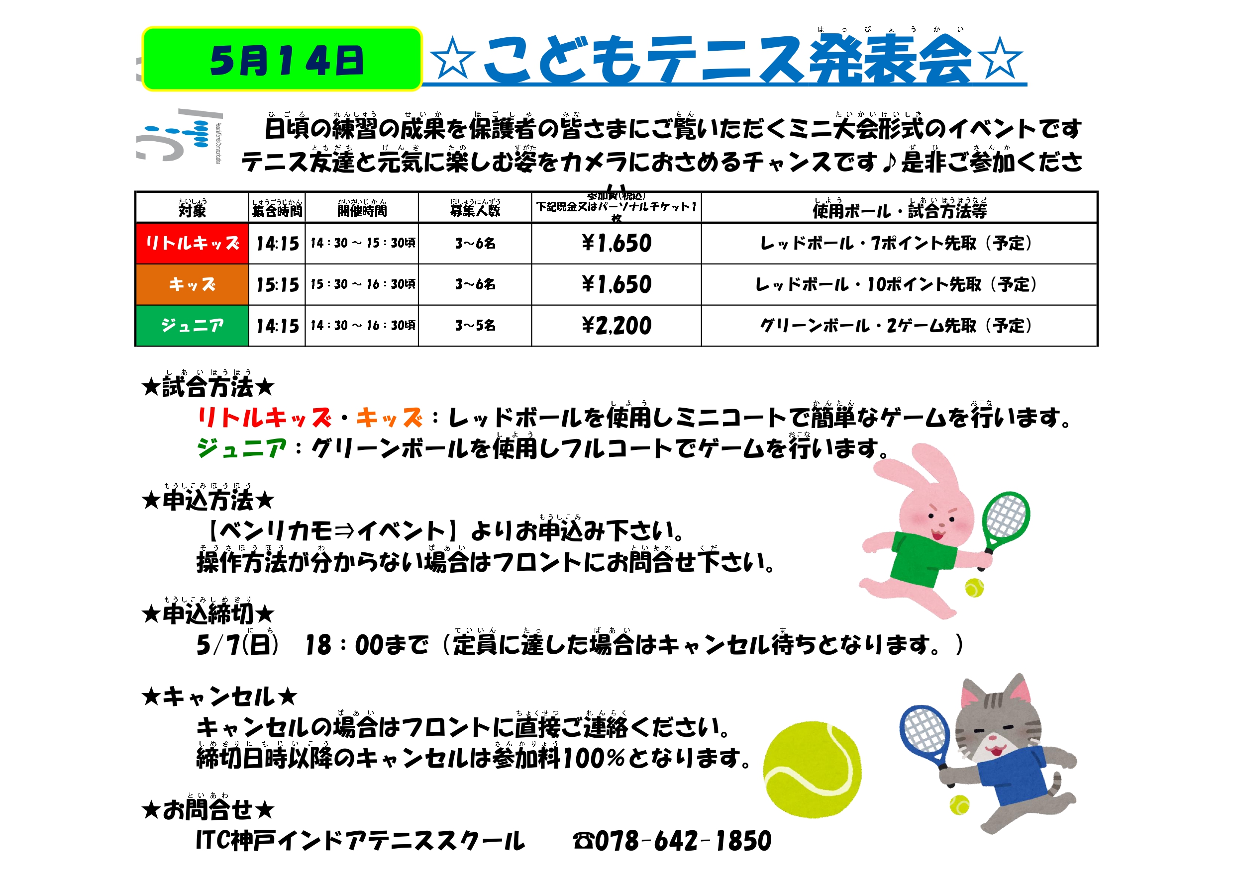 また、保護者の皆様はお子様の練習の成果、テニスをしている姿を見るチャンスです!!