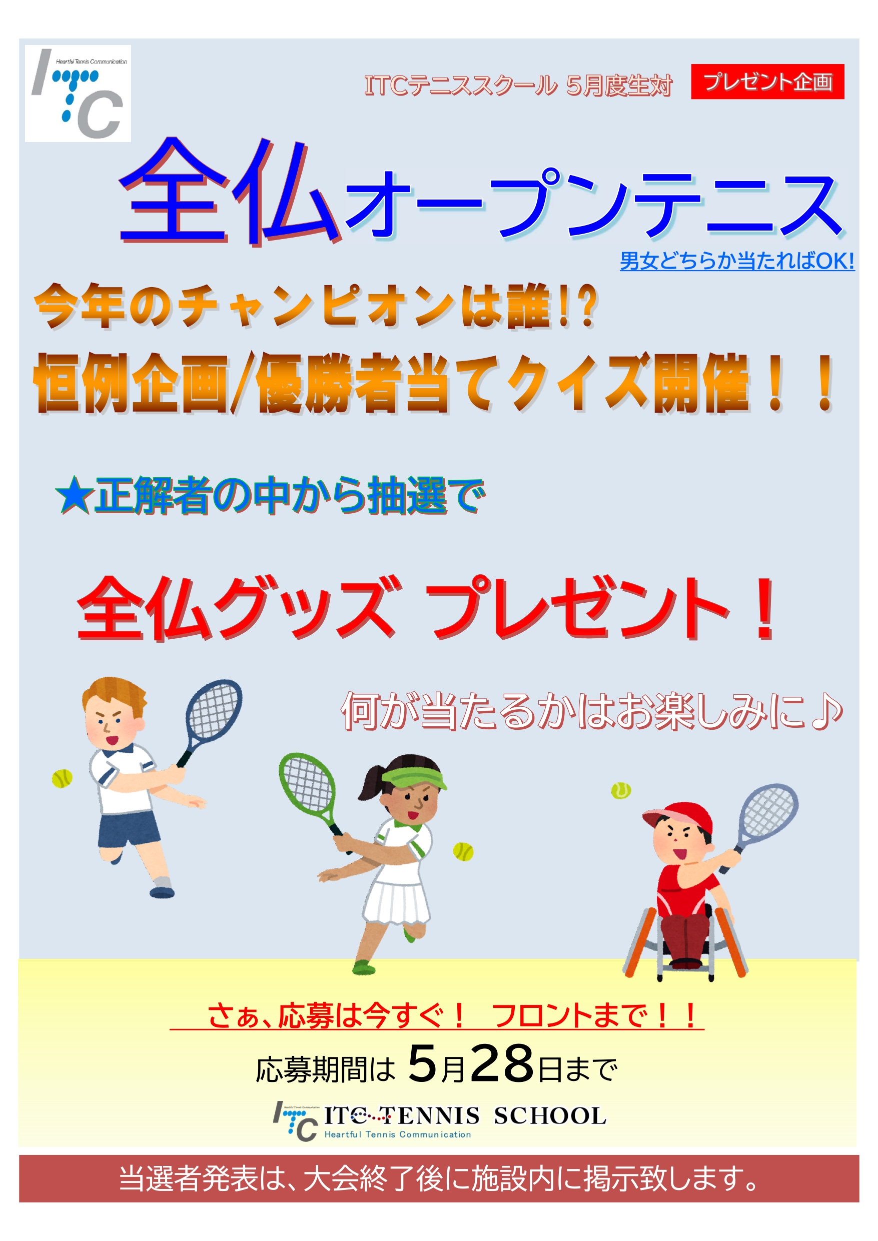 正解者の中から抽選で、全仏グッズプレゼント
