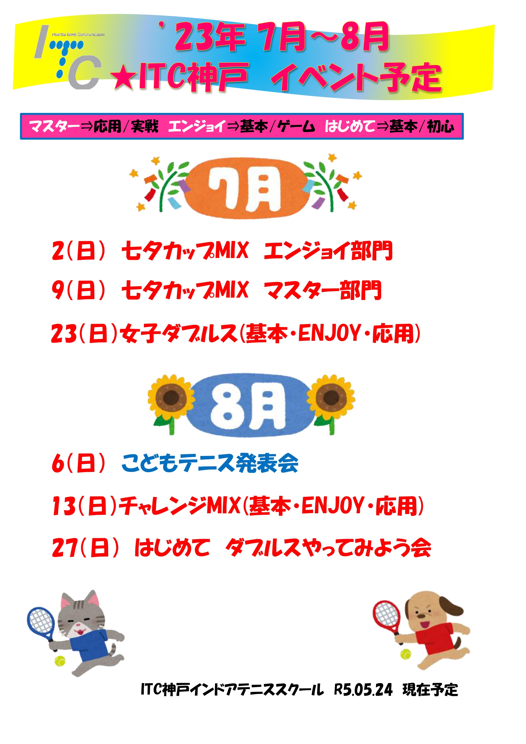 ITC神戸 7月~8月イベント予定のお知らせです!!
