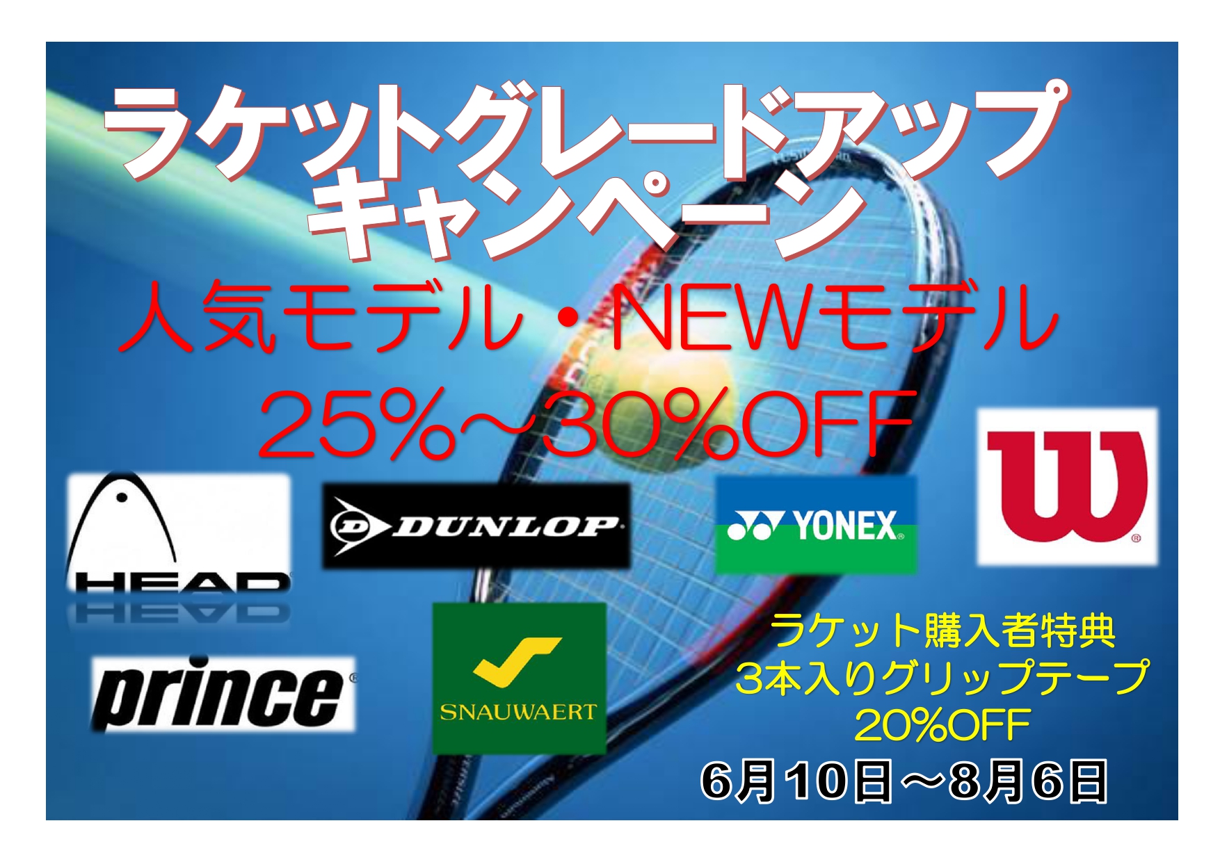 ラケットは25%~30%OFF