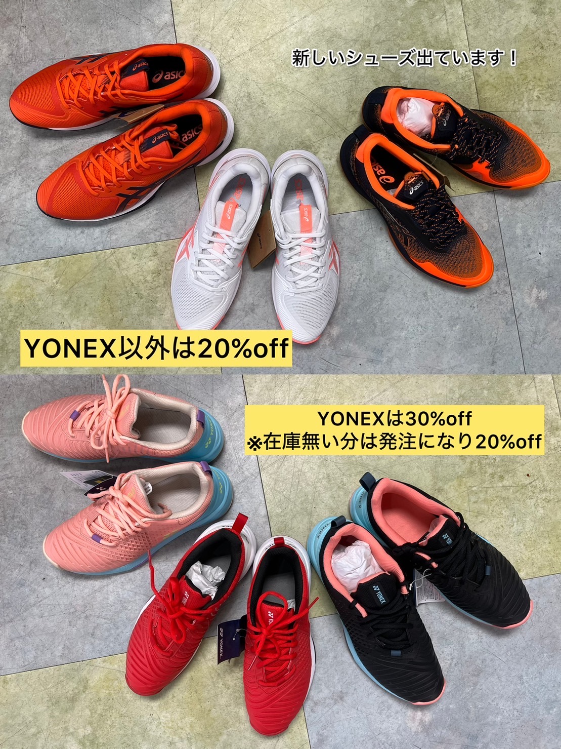 YONEXのシューズは在庫分で30%OFF(※取り寄せになると20%OFFです)で購入できます!!