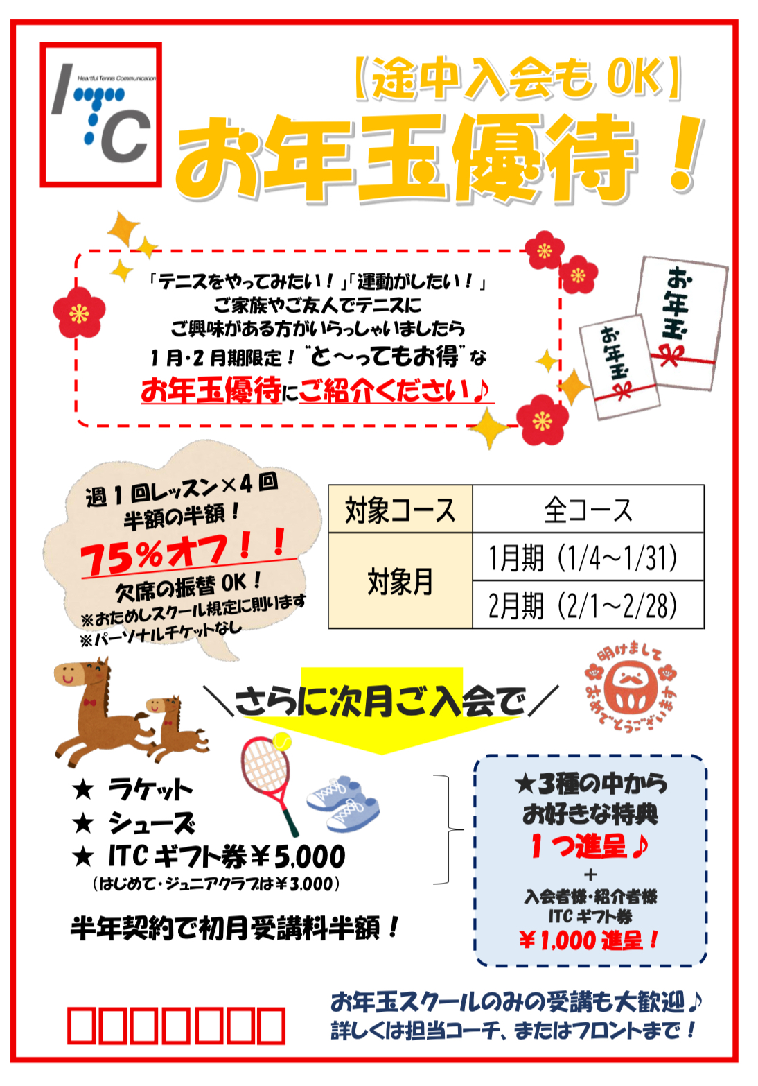 お年玉企画"第二弾”は、お年玉優待キャンペーンです♪♪