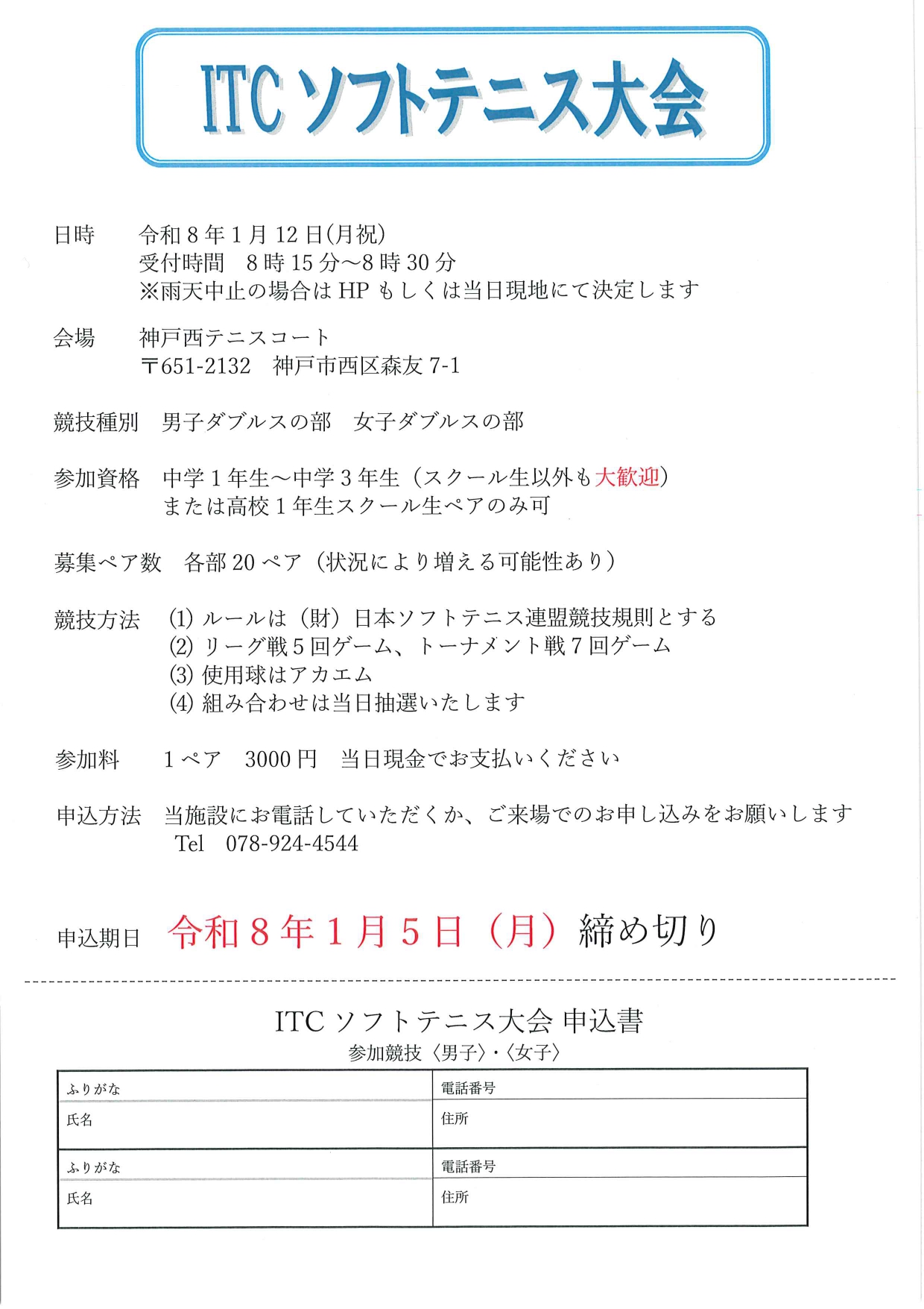 ITCソフトテニス大会の締め切りが近づいてきました。