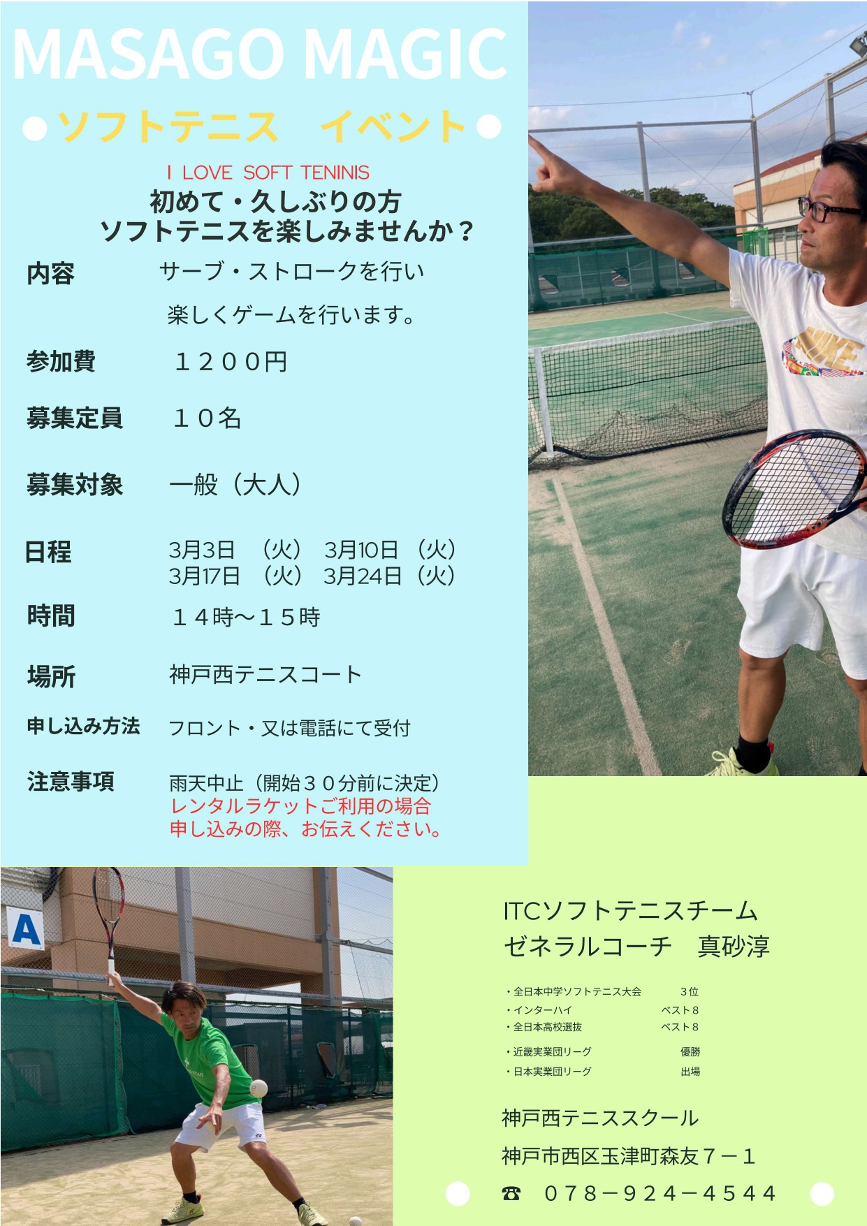 3月の毎週火曜日にソフトテニスイベントを開催します!