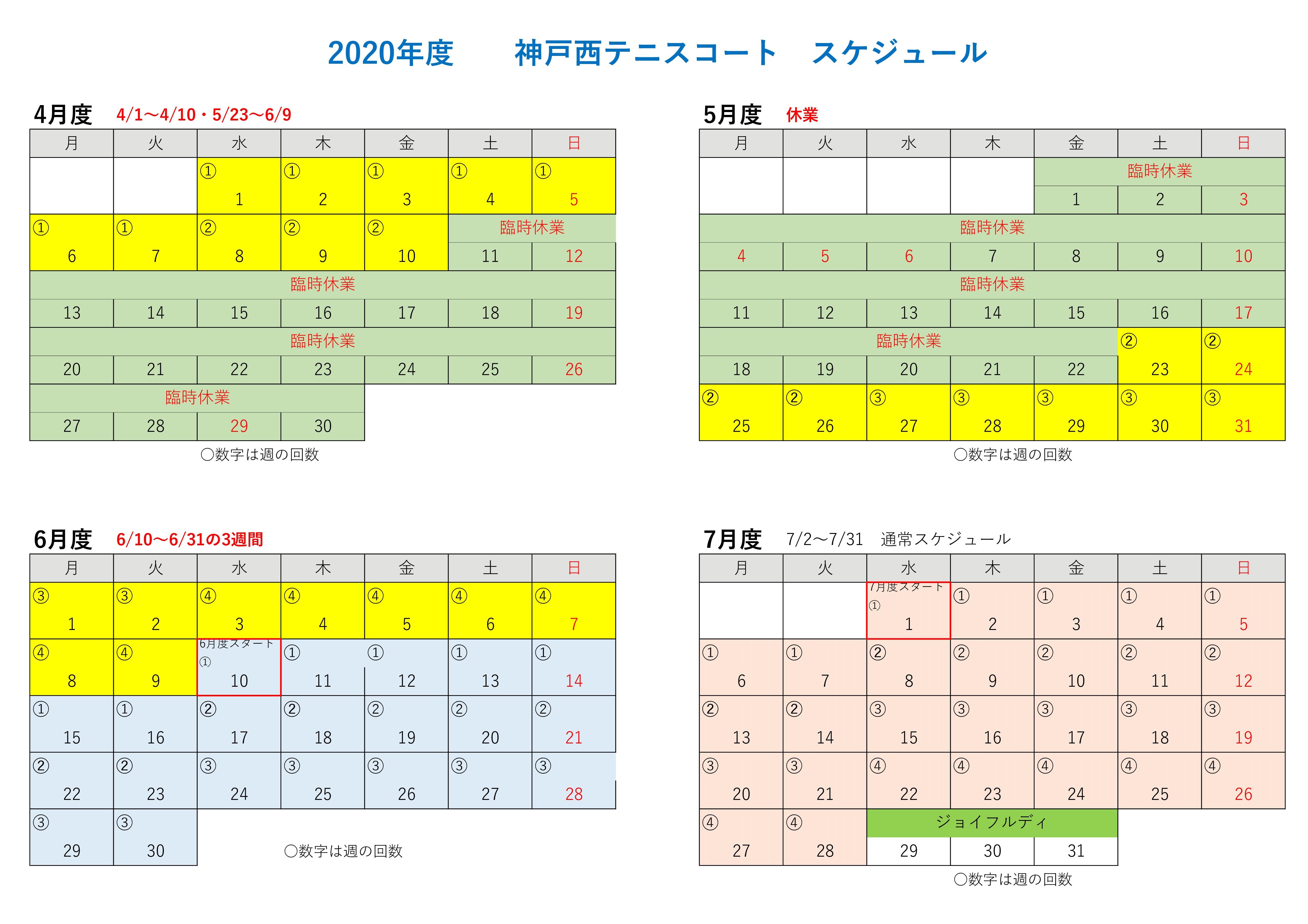 スクール再開後のスケジュールのお知らせ