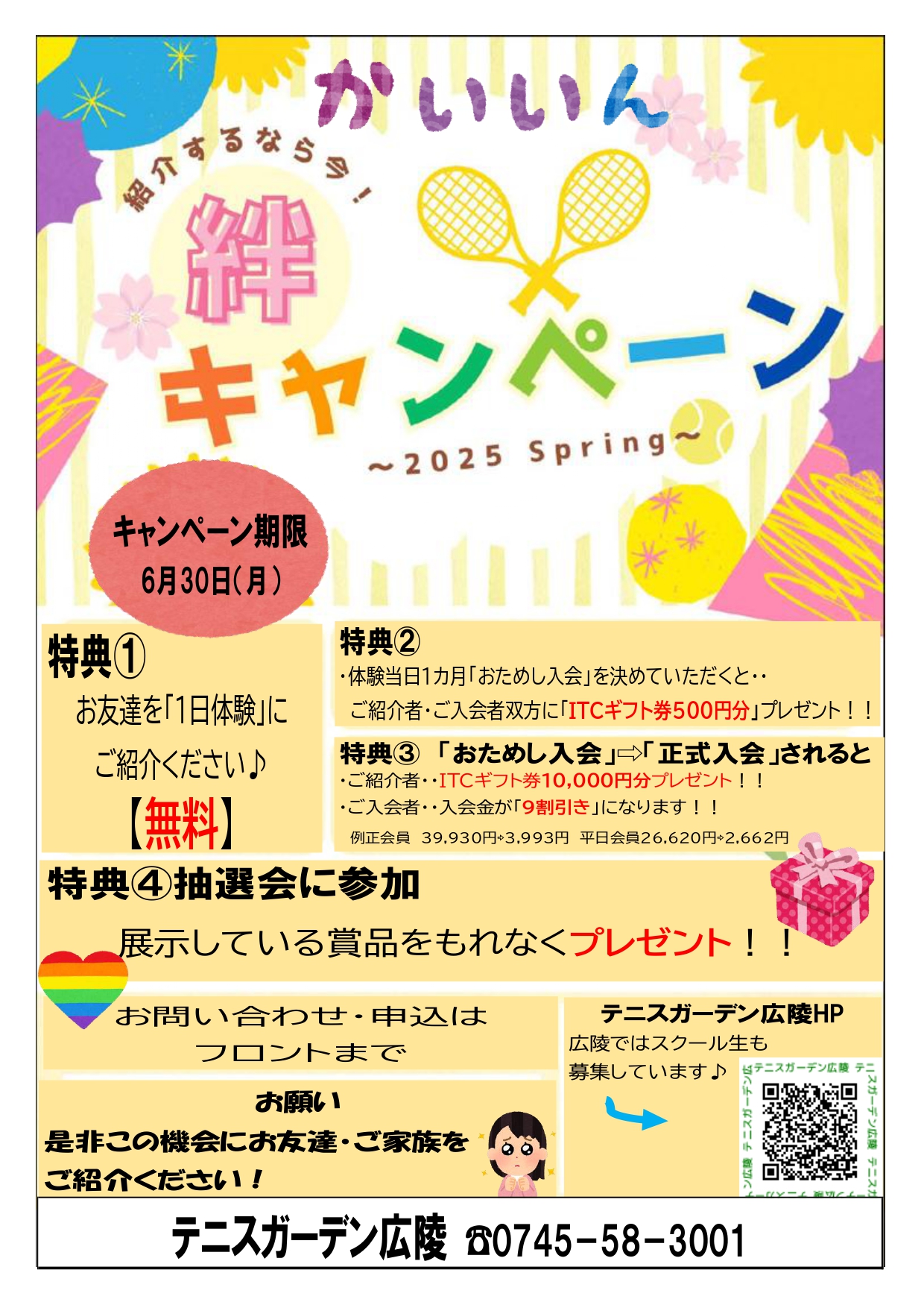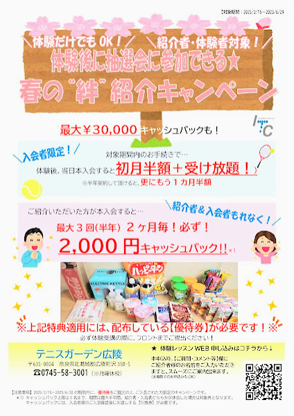 体験を受講されると、体験者・紹介者共お楽しみ抽選をしていただけます