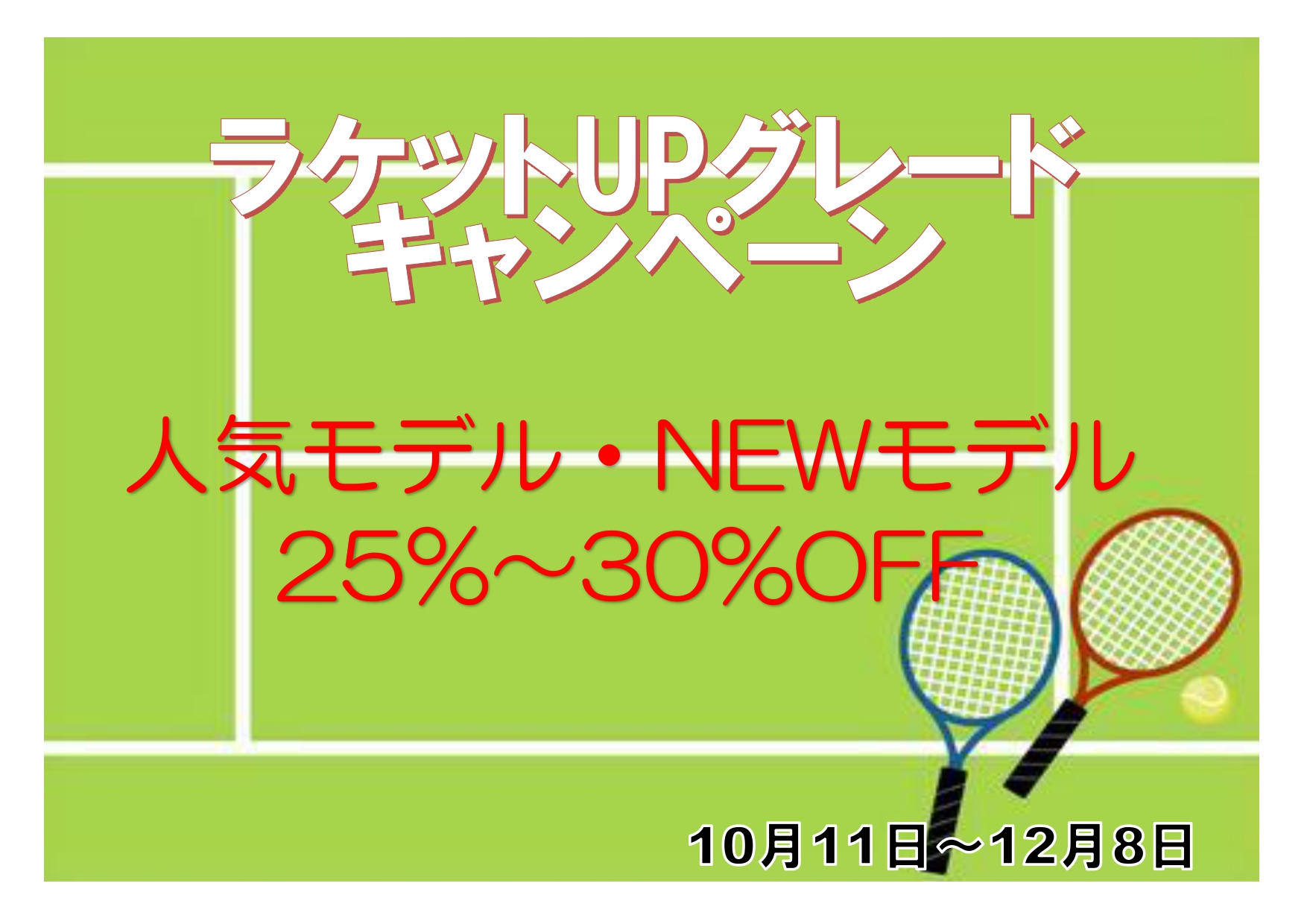 ①ラケットキャンペーン・・25%~30%OFF(メーカー・機種による)