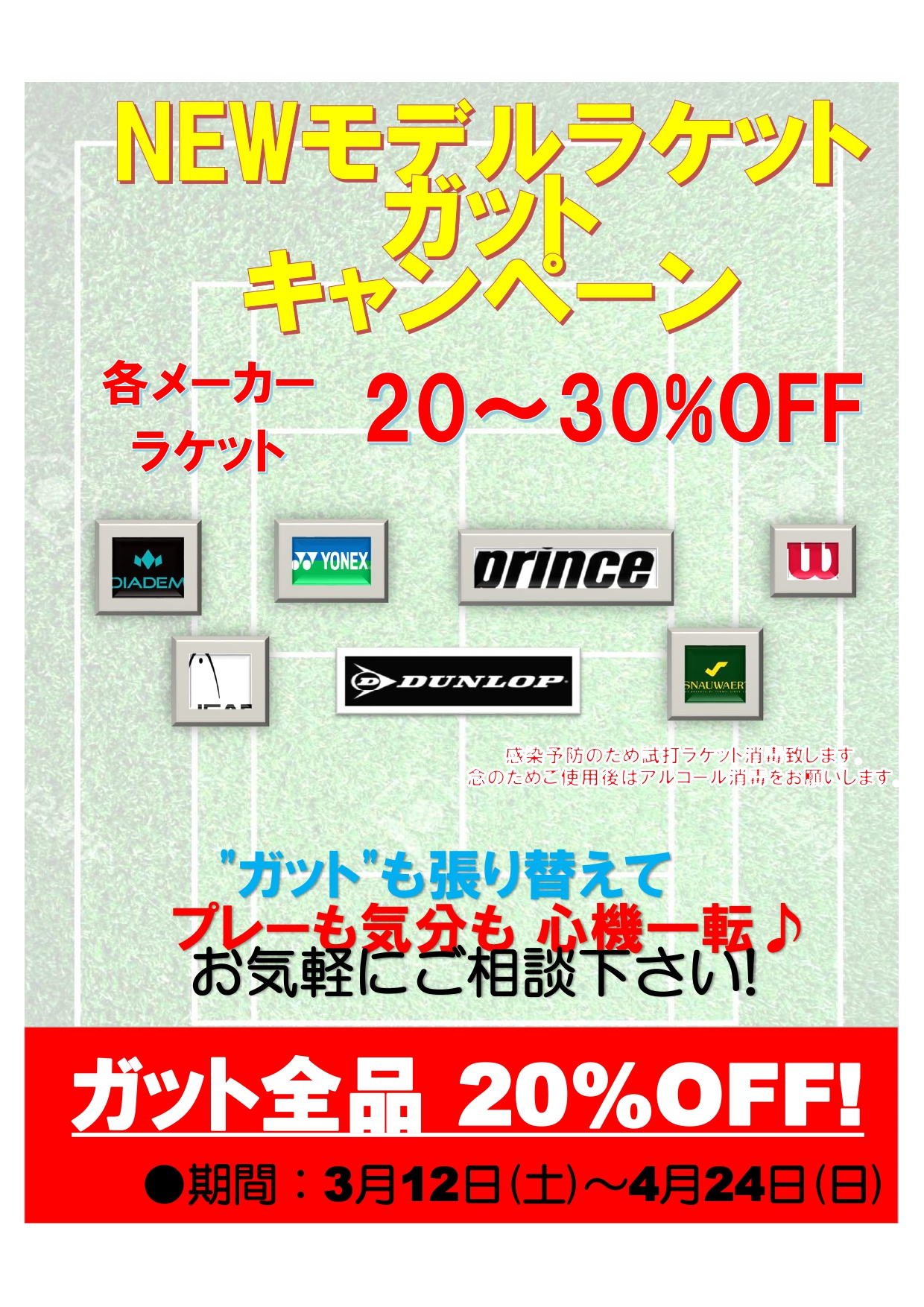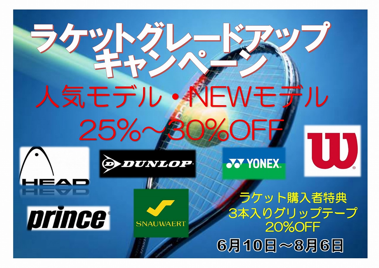 ①ラケットキャンペーン・・25%~30%OFF(メーカー・機種による)