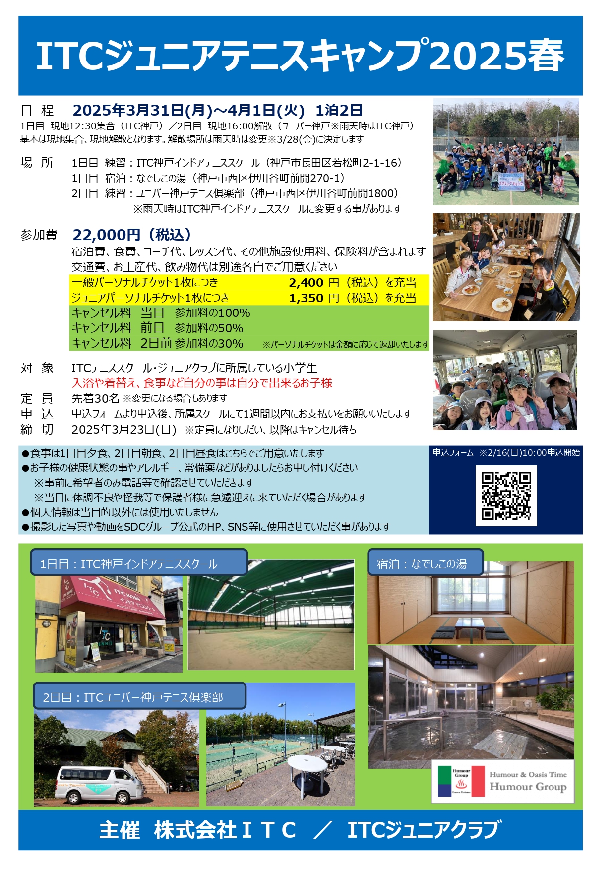 今年も🌸ITCジュニア スプリングテニスキャンプ🌸を開催します🎾