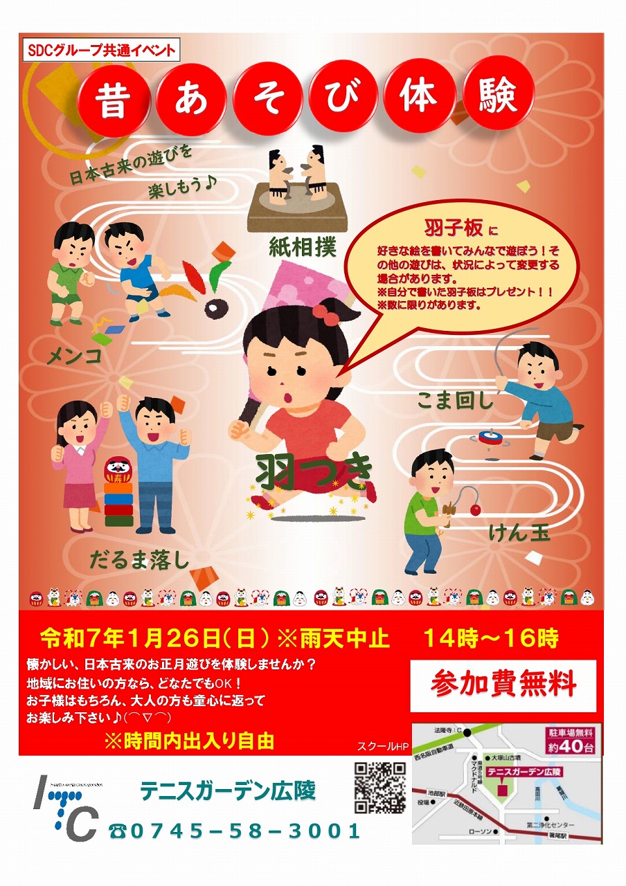 テニスガーデン広陵では恒例の「昔遊び体験」を開催します