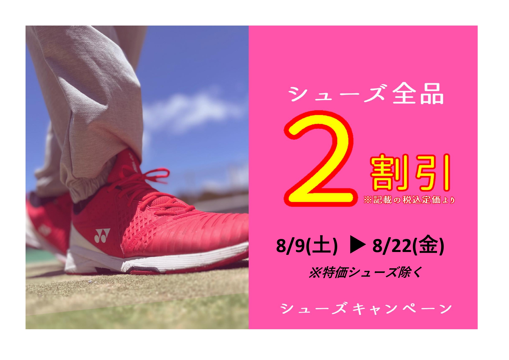 本日 9日(土)からシューズキャンペーンを始めます~(⌒∇⌒)