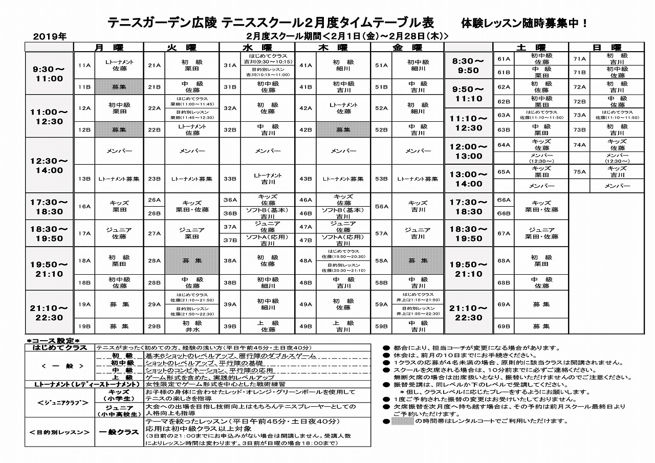 2月度タイムテーブル&レンタルコート