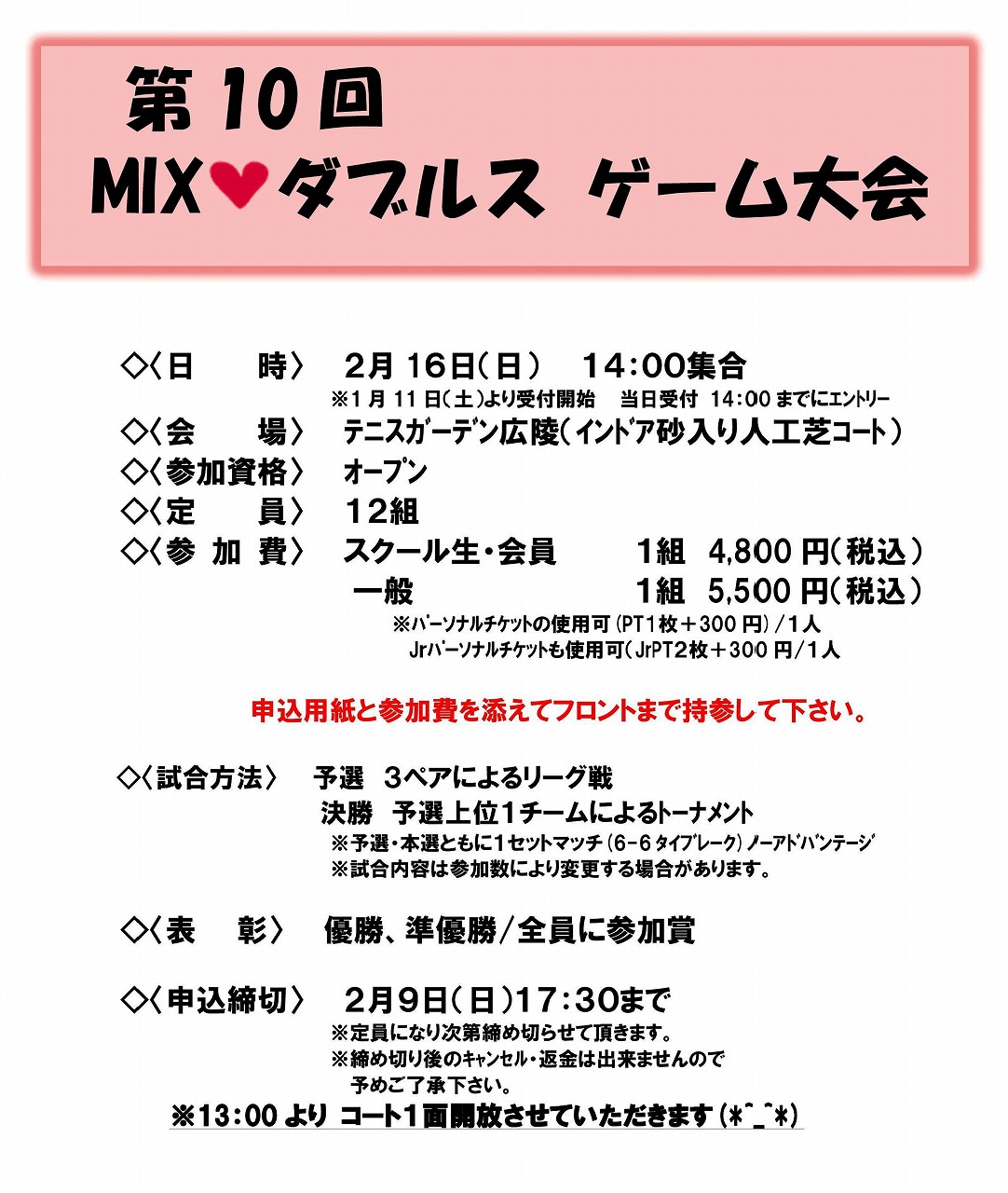 💖第16回 バレンタインミックスダブルス募集中!💖 (01/09)
