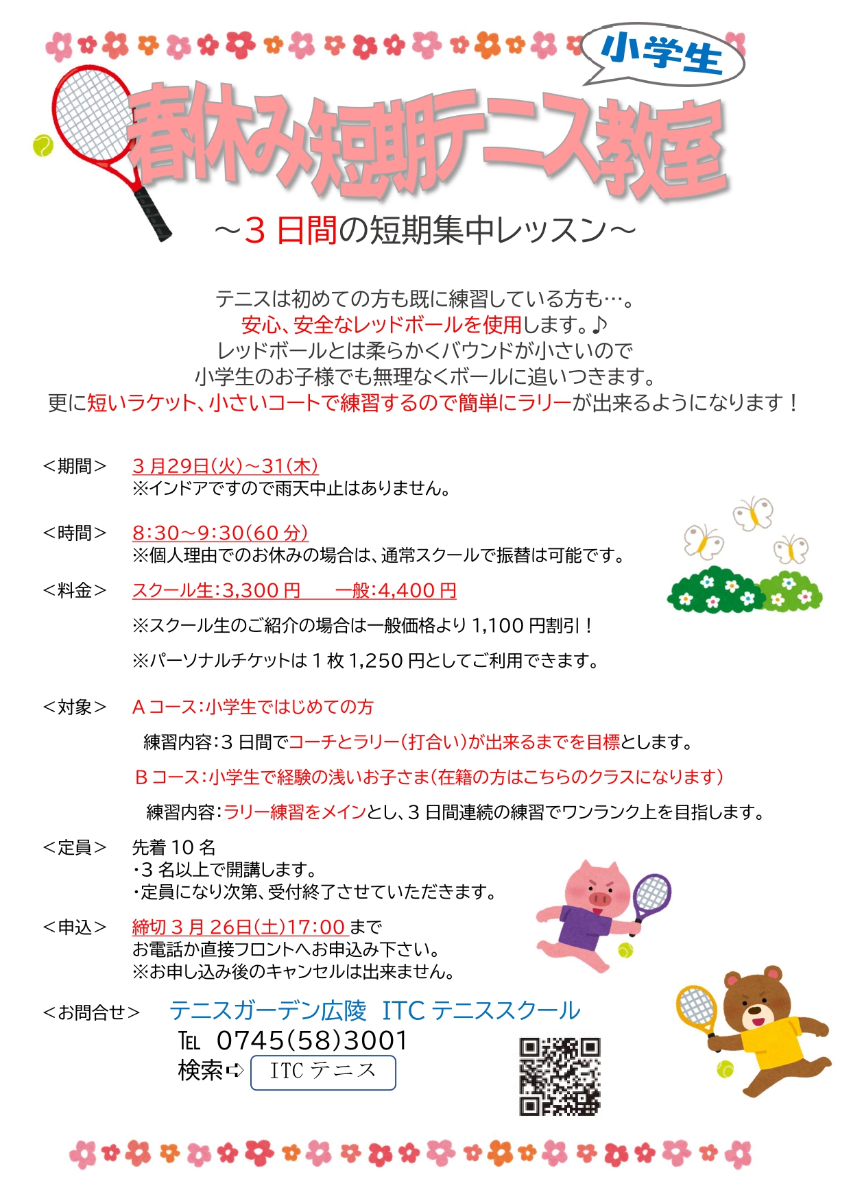 テニスは初めての方も既に練習している方も…。