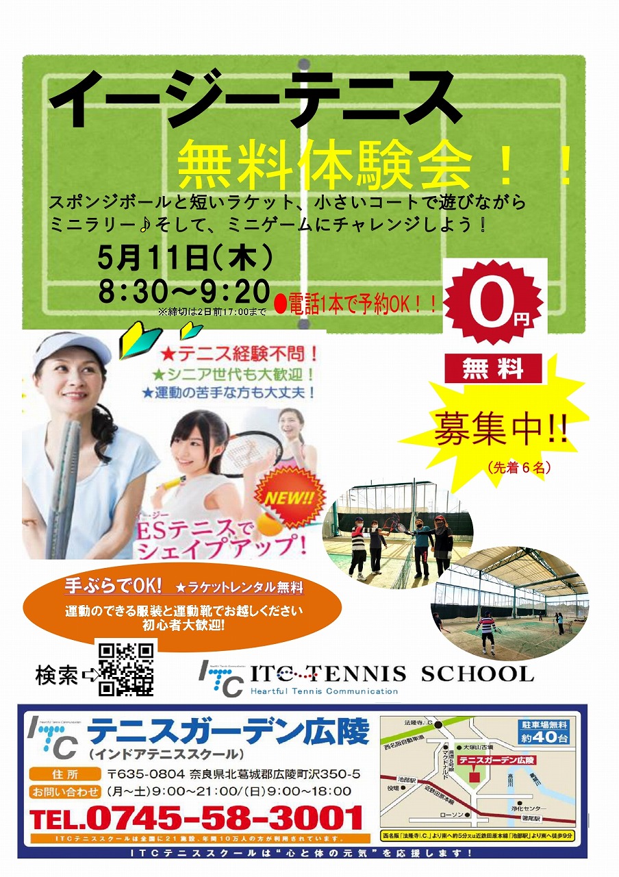 5月も「ソフトテニス」及び「イージーテニス」の無料教室を開催します