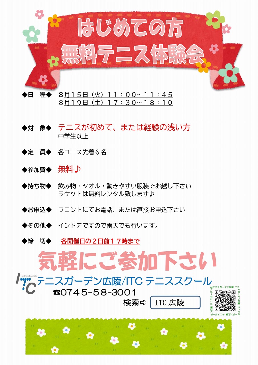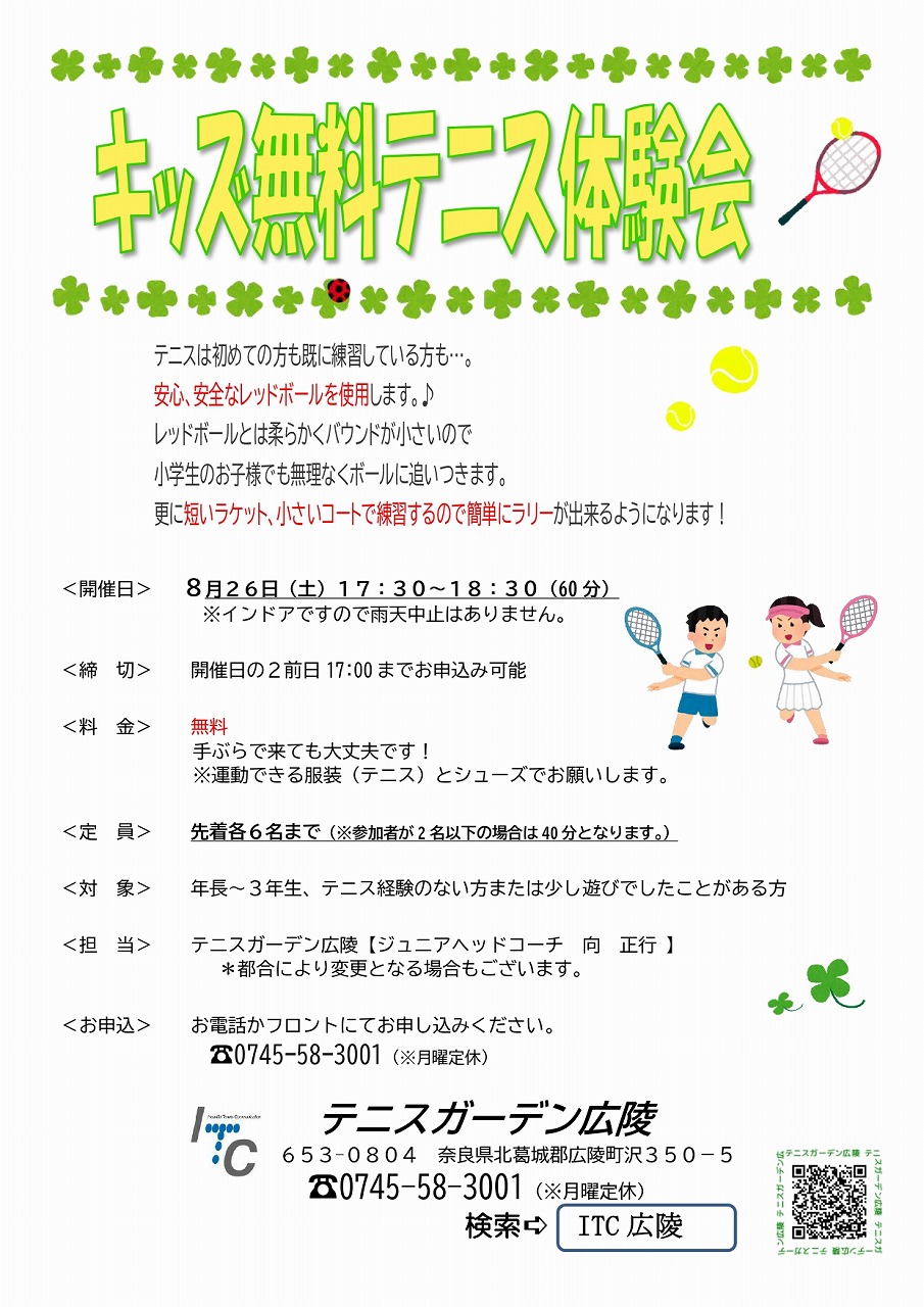対象:年長~3年生、テニス経験のない方または少し遊びでしたことがある方