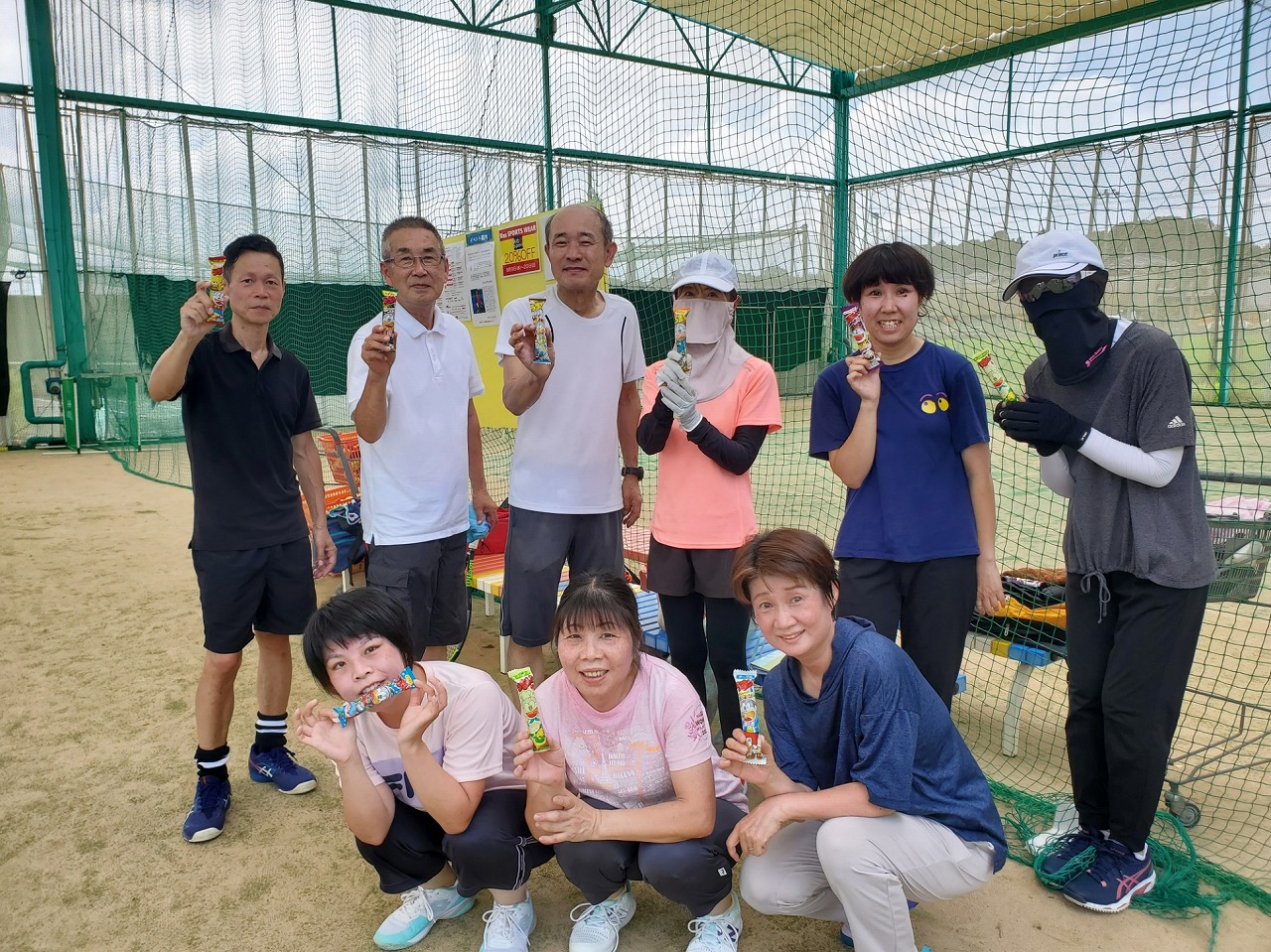 置いてある的にサーブが当たった方全員に「うまい棒」をプレゼント中