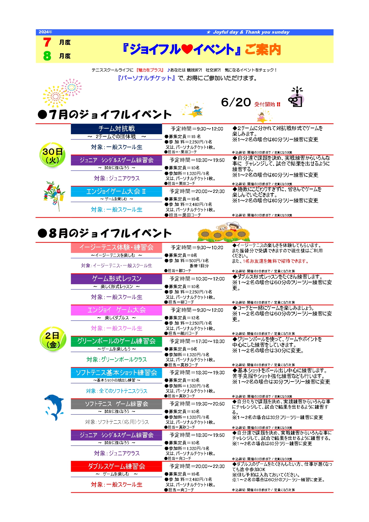 8月4日(日)~31日(土)がスクールです