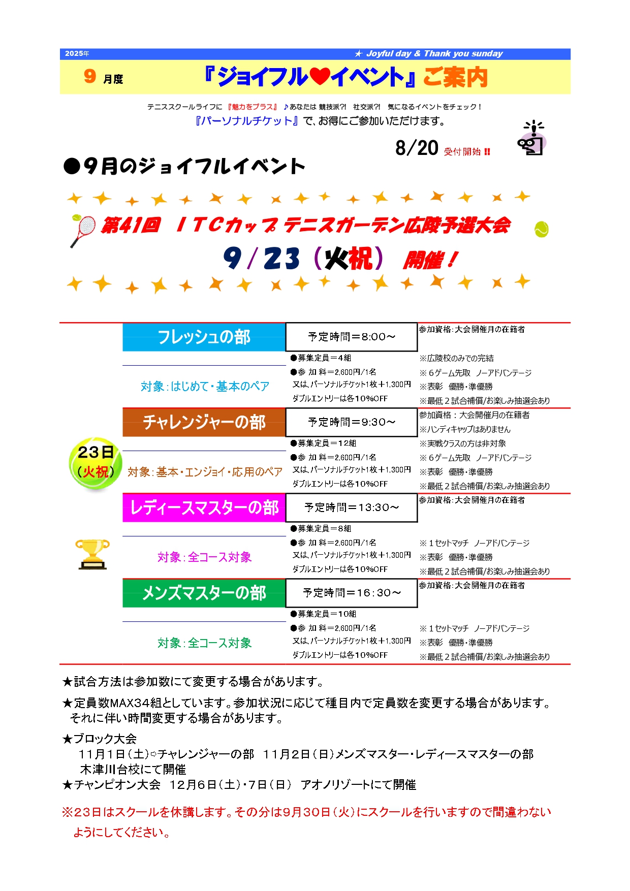 ☆ITCカップがいよいよ始まります!広陵予選は9/23(火・祝)☆