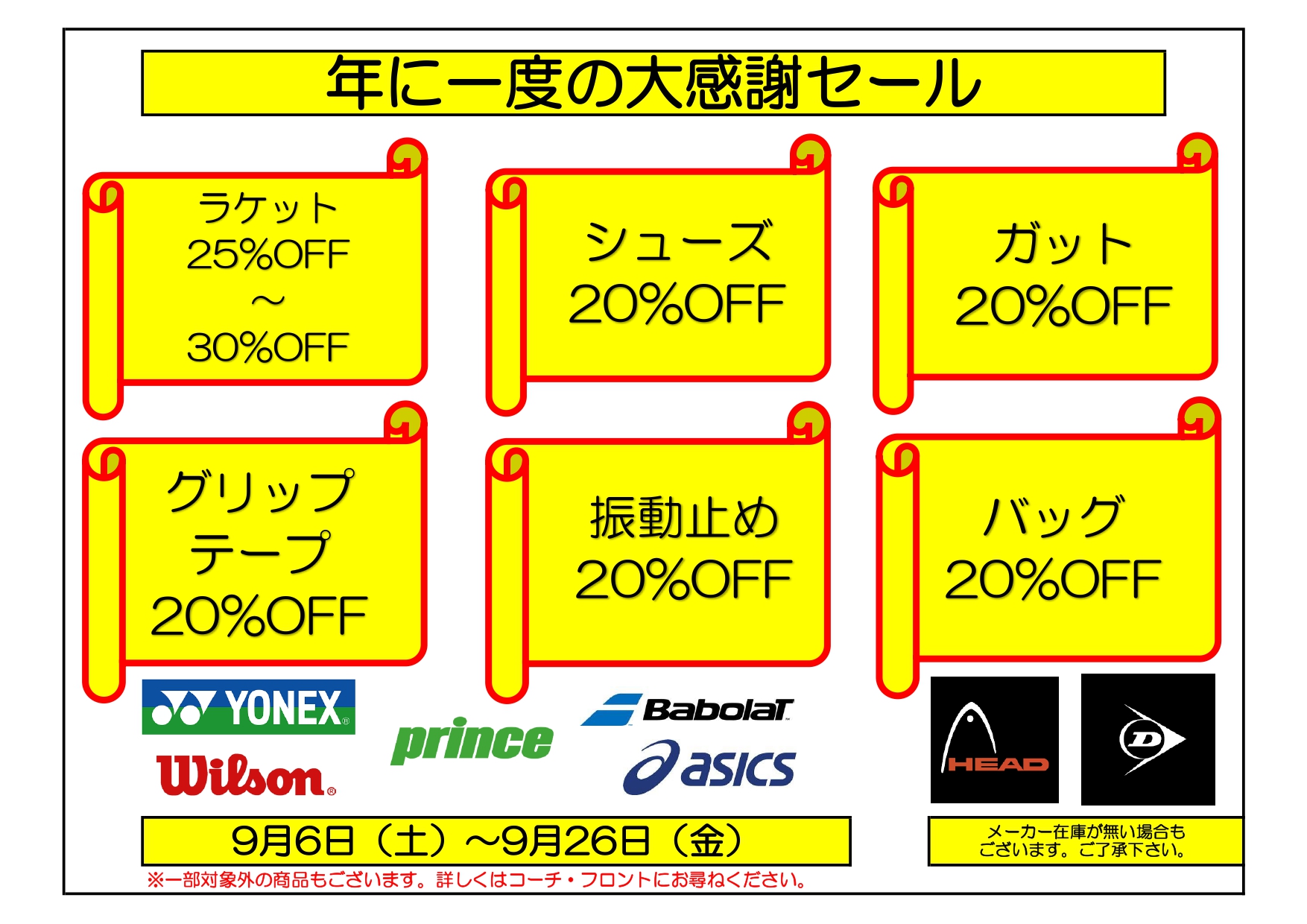 9/6(土)より「大感謝セール」がはじまりま~す🎶