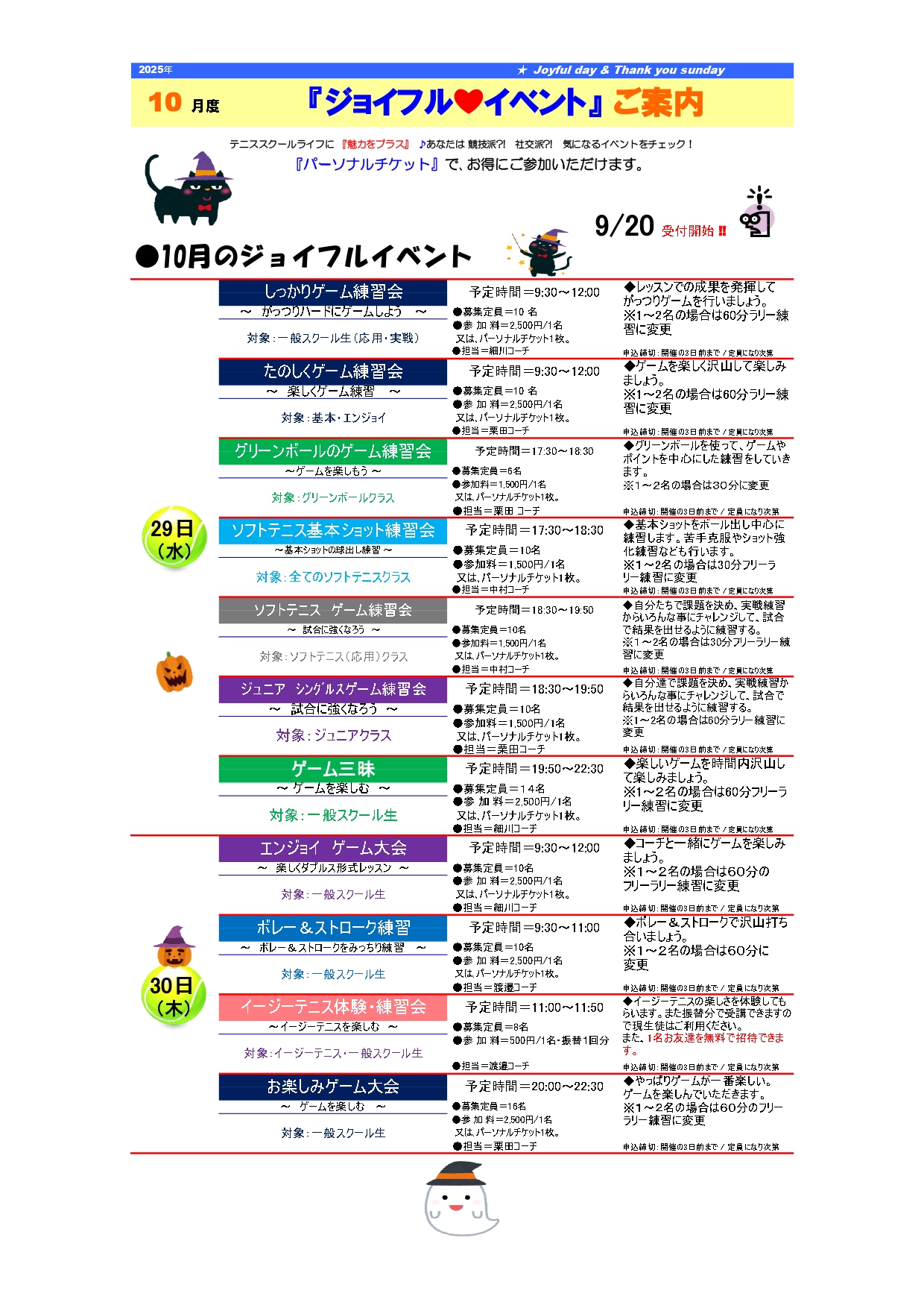 10月もテニスを楽しみましょう(。・ω・。)ノ♡