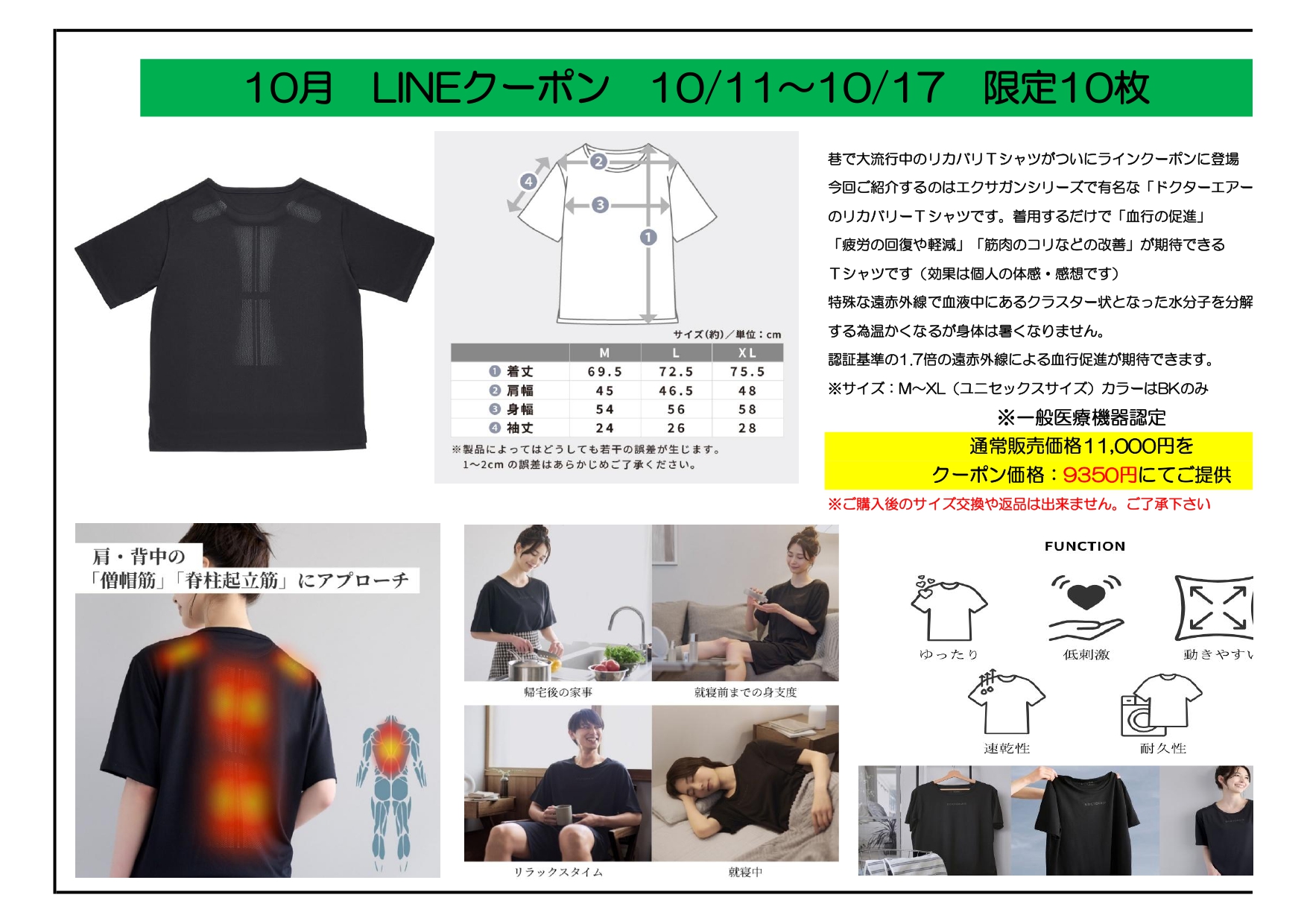 今月のLINEクーポンは ドクターエア―のリカバリーTシャツです🎵