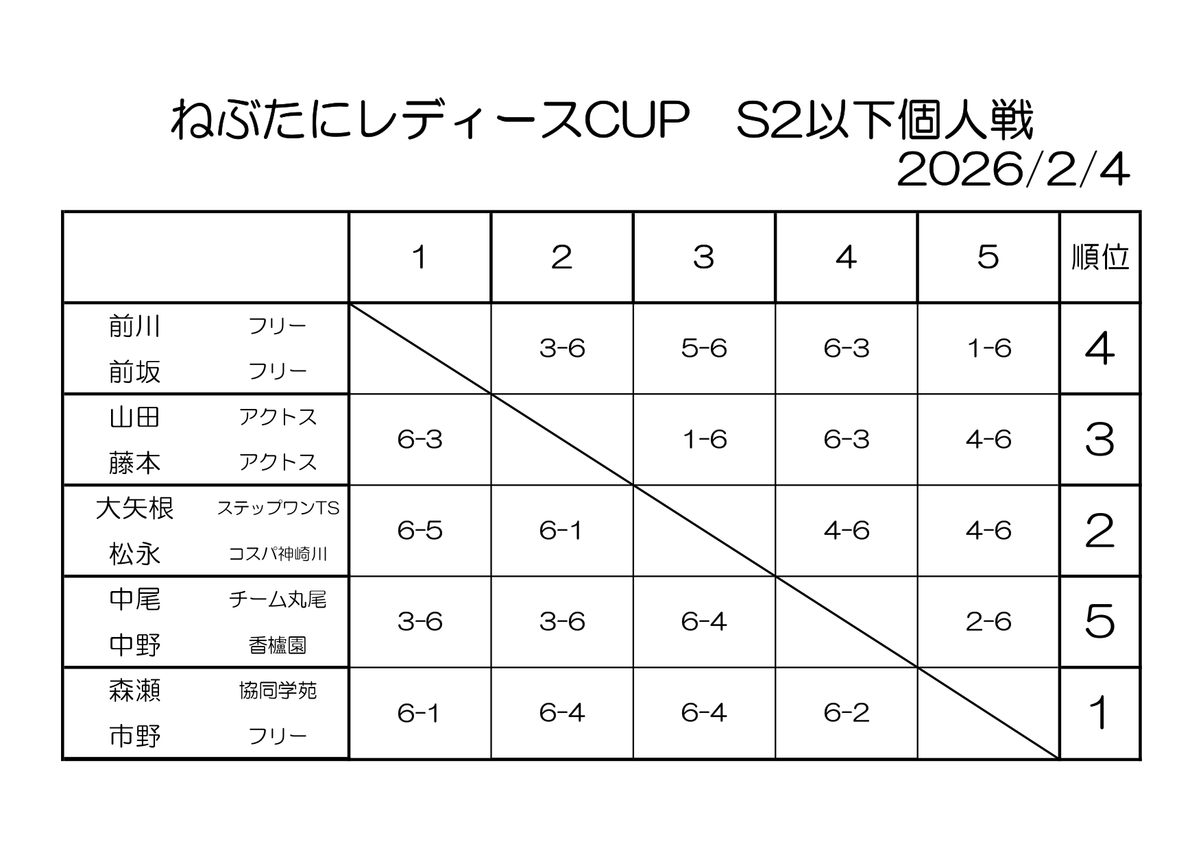 2/4(水) ねぶ谷レディースカップS2以下個人戦を開催しました