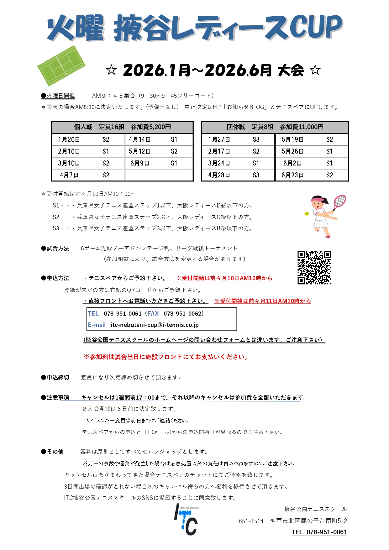ねぶ谷レディースCUP 火曜日開催試合が増えます!