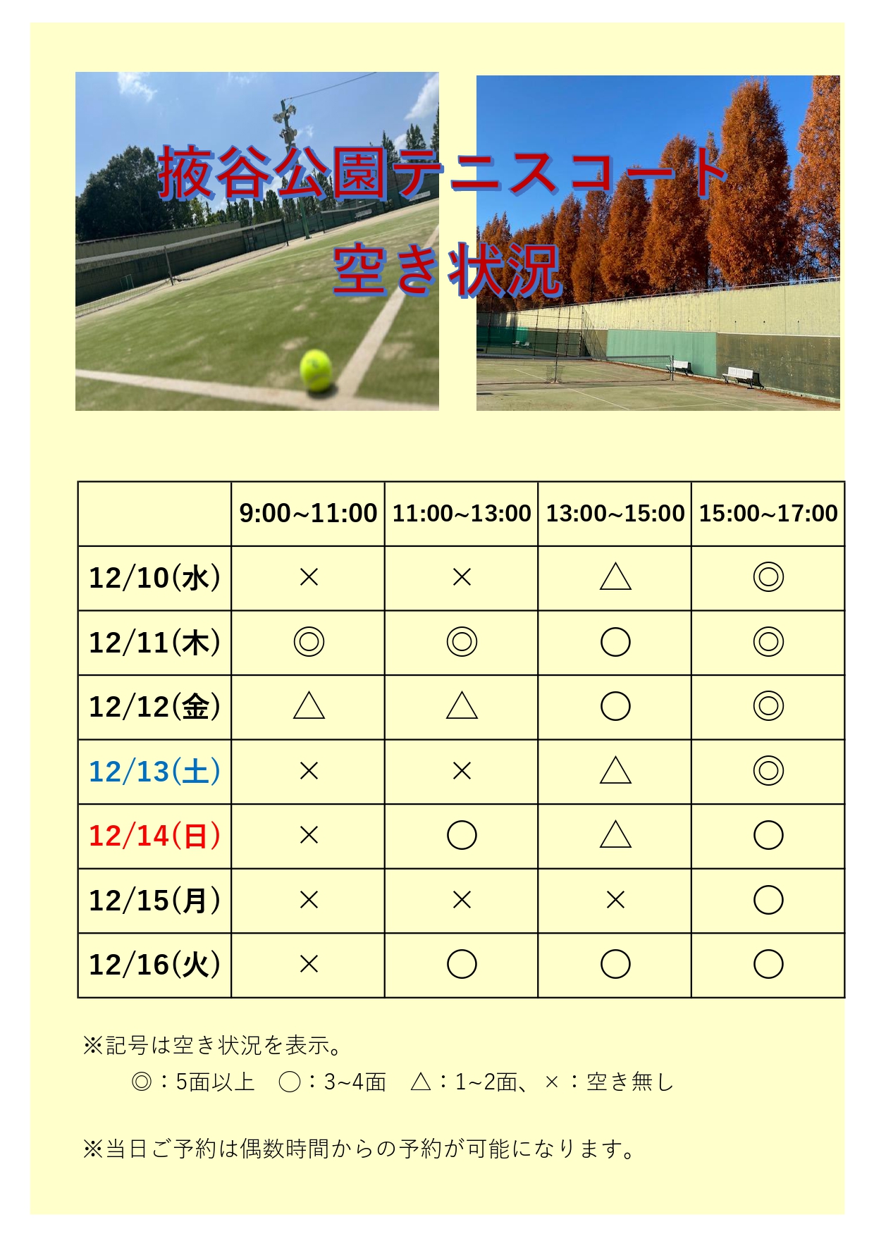 レンタルコート空き状況のお知らせ🎾