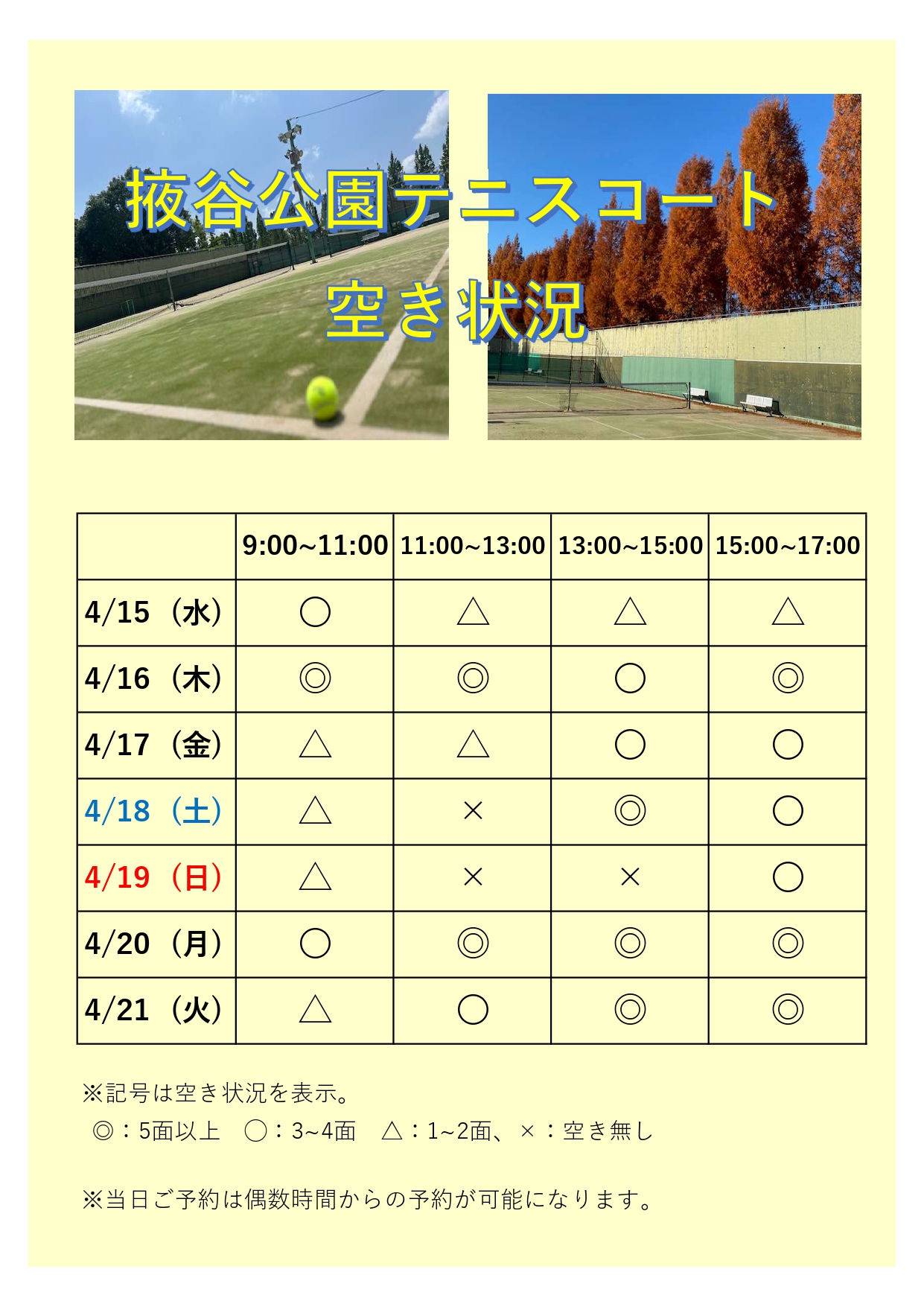 レンタルコート空き状況のお知らせ🎾