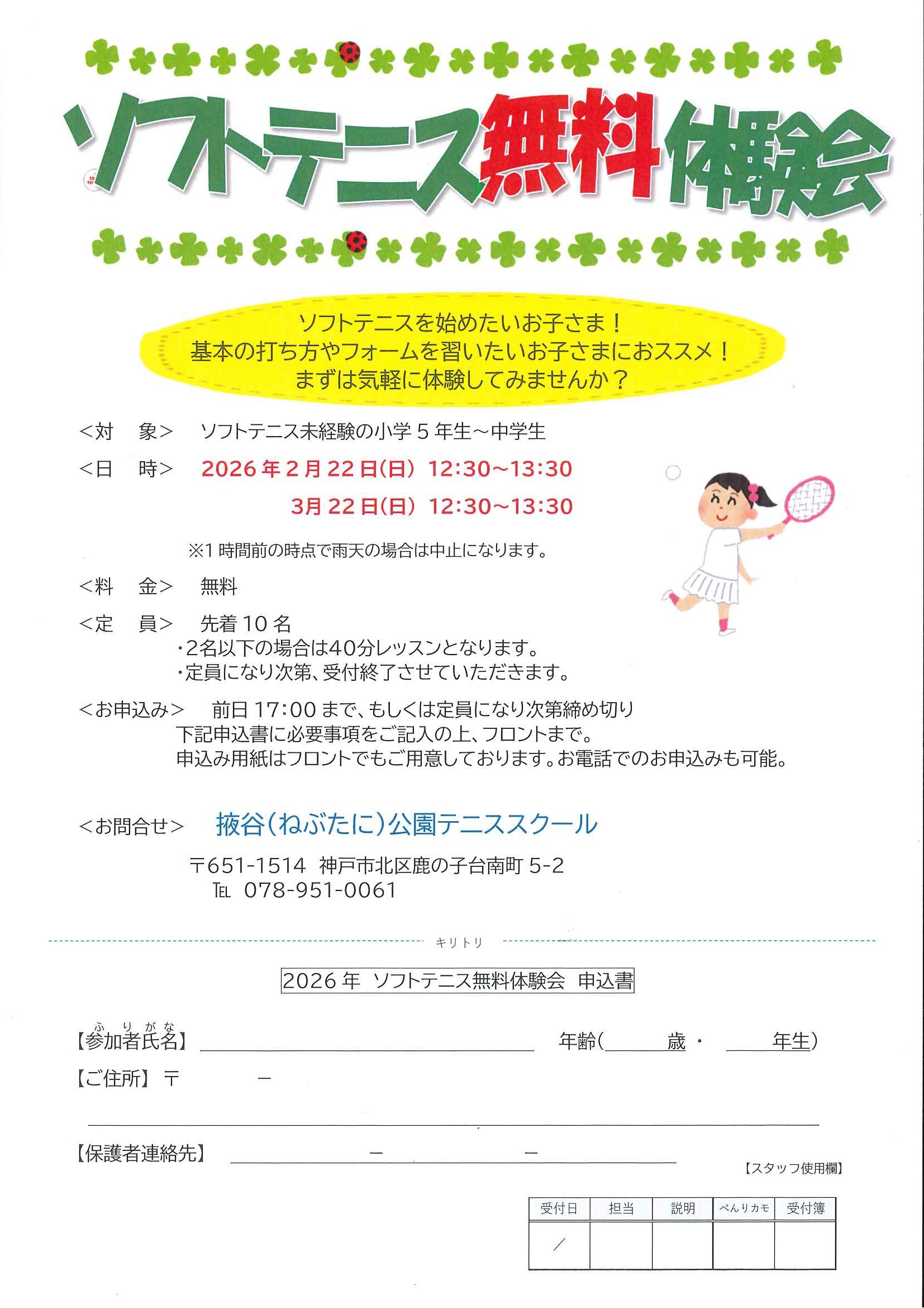 『ソフトテニス無料体験会』開催します
