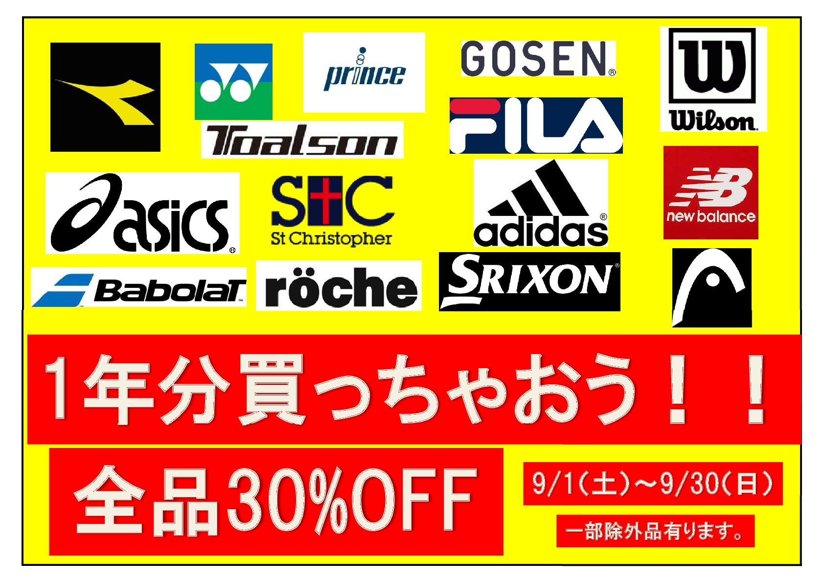 ラケットが30%OFFで、ガットが20%OFFです!!!
